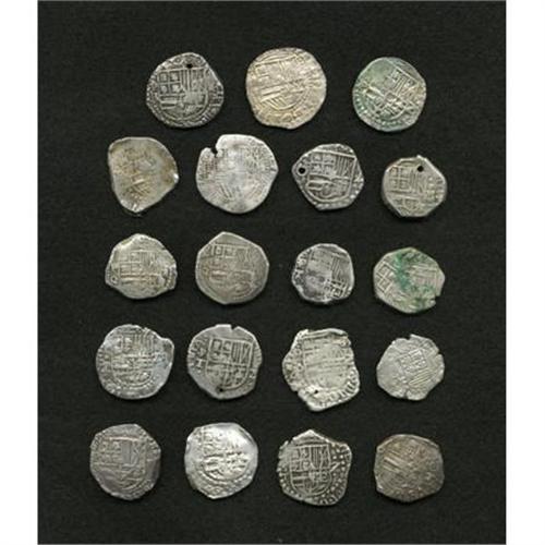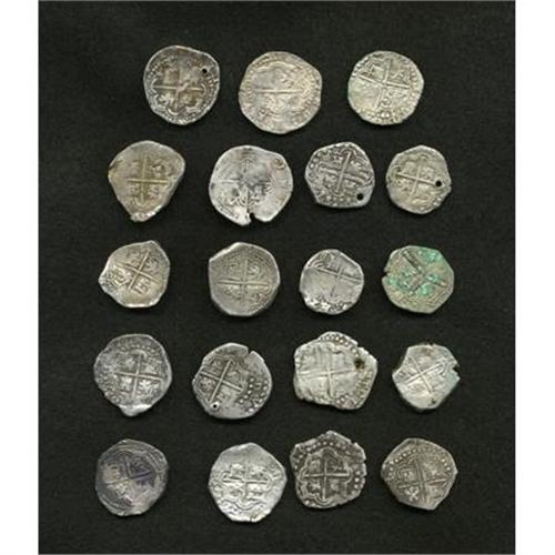 <B>Felipe II, III & IV cob 2 Reales Mixture,</B></I> nineteen coins spanning a century of Spanish rule in Potosi, most have the P mintmark and/or assayer initial. Conditions are VG to nice VF, five are holed and none appears to be sea salvaged. A most useful group with several attractive examples. <B>Sold as is, no return lot.</B></I><BR><BR><b>Shipping:</b> Coins & Currency (<a target="_blank" href="http://www.heritageauctions.com/common/shipping.php">view shipping information</a>)