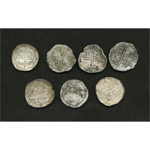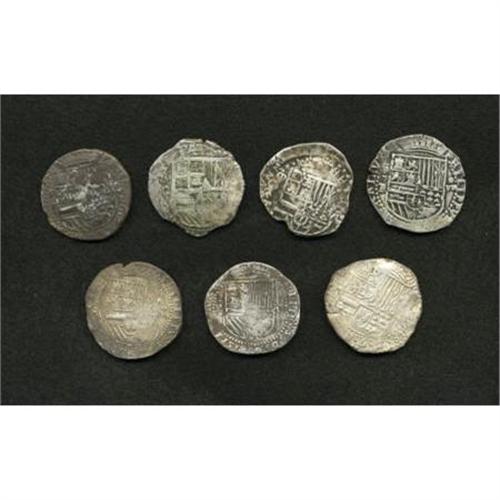 <B>Felipe II and III cob 8 Reales Selection,</B></I> seven coins, many with P mintmark and/or assayer initial. We noticed assayers A, R, C and TR in a quick viewing. Grades are crude Fine to VF, some with surface patination. <B>Sold as is, no return lot.</B></I><BR><BR><b>Shipping:</b> Coins & Currency (<a target="_blank" href="http://www.heritageauctions.com/common/shipping.php">view shipping information</a>)
