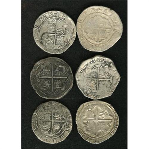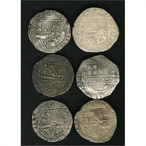 <B>Felipe II cob 4 Reales - Nice Selection,</B></I> six pieces, all with P mintmark above the assayer's initial, featuring: Assayer A/B (1), clearly repunched and very scarce, Assayer L (3) and Assayer M (2). A desirable group of scarcer assayers. Conditions are nice Fine to VF, none holed but one M is corroded. <B>Sold as is, no return lot.</B></I><BR><BR><b>Shipping:</b> Coins & Currency (<a target="_blank" href="http://www.heritageauctions.com/common/shipping.php">view shipping information</a>)