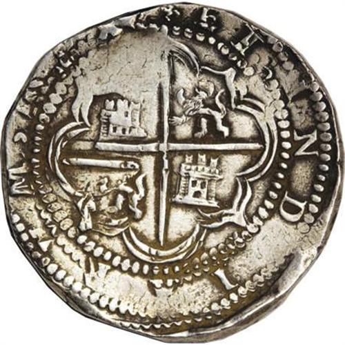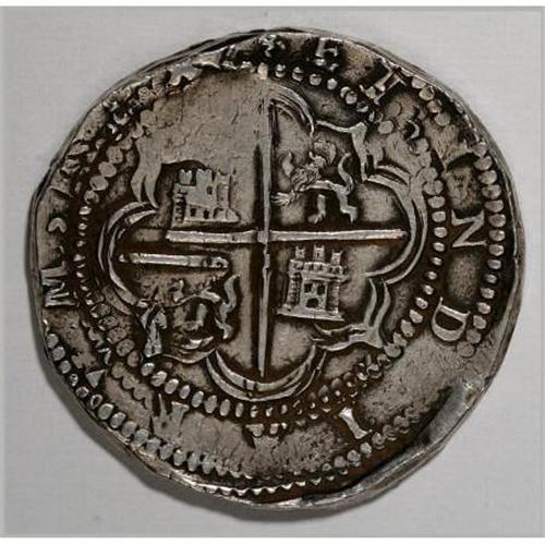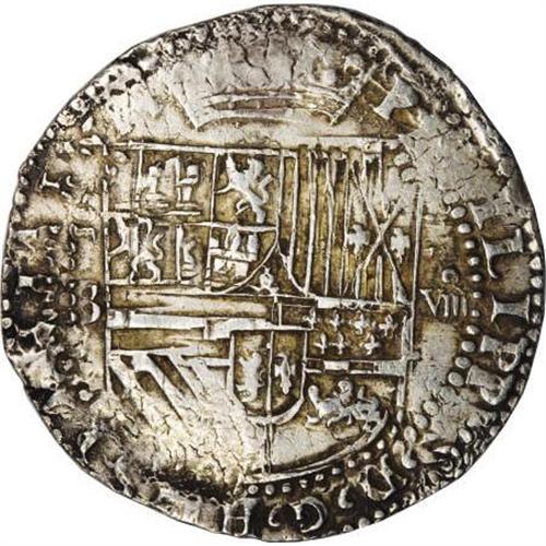<B>Felipe II cob 8 Reales Assayer B,</B></I> bold VF, nicely toned with full legends and a virtually round planchet, minor doubling on the left side of the obverse, barely noticeable, but obscuring the P mintmark.<BR><BR><b>Shipping:</b> Coins & Currency (<a target="_blank" href="http://www.heritageauctions.com/common/shipping.php">view shipping information</a>)