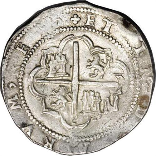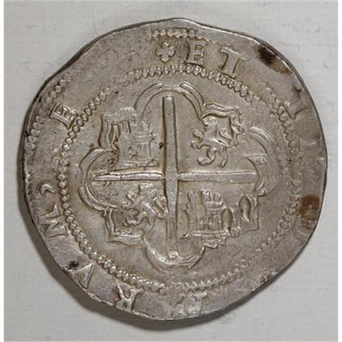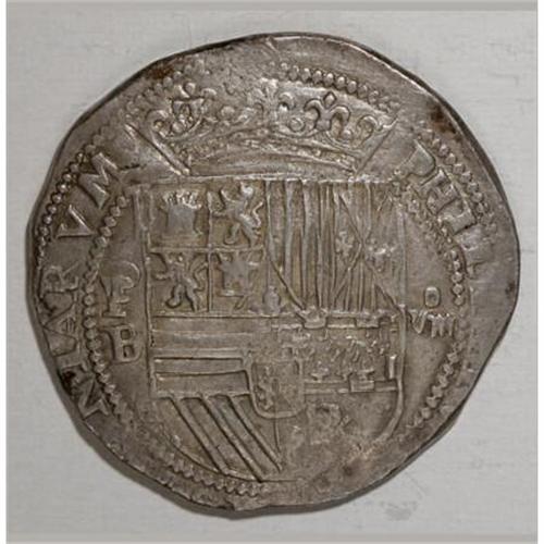 <B>Felipe II cob 8 Reales Assayer B,</B></I> nearly XF, bold details including the P and B, lightly cleaned long ago but now with excellent eye appeal. Early style, struck on a broad, nearly round flan with no apparent flaws. 27.33 grams. <BR><BR><b>Shipping:</b> Coins & Currency (<a target="_blank" href="http://www.heritageauctions.com/common/shipping.php">view shipping information</a>)