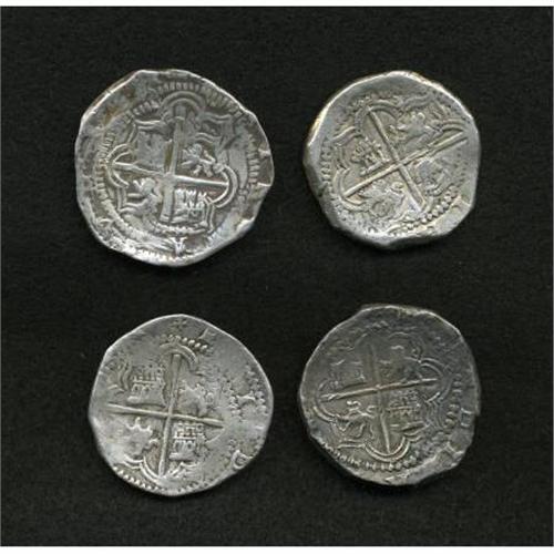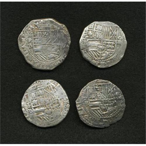 <B>Felipe II cob 8 Reales Assayer B Quartet,</B></I> four examples of this later style, smaller flan variety of the B assayer. All have P-B to the right of the shield. Grades are Fine to VF with none holed or mounted. <B>Sold as is, no return lot.</B></I><BR><BR><b>Shipping:</b> Coins & Currency (<a target="_blank" href="http://www.heritageauctions.com/common/shipping.php">view shipping information</a>)