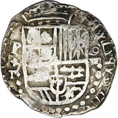 <B>Felipe III cob 8 Reales 1621P-T,</B></I> KM10, crude F-VF, bold P and T, and a nice 621 date in the reverse legend. Rare date.<BR><BR><b>Shipping:</b> Coins & Currency (<a target="_blank" href="http://www.heritageauctions.com/common/shipping.php">view shipping information</a>)
