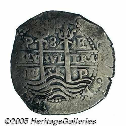 <B>Felipe IV 8 Reales 1658-E, </B></I>KM21, choice toned VF, small digits in date, three readable dates. An unusually attractive example with great details and strong eye appeal.