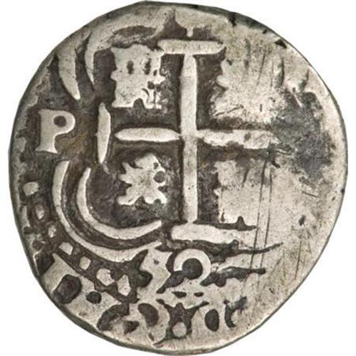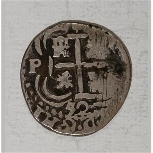 <B>Felipe IV cob 1 Real 1652P-E Transitional,</B></I> Type III with the characteristic E DOT E, reverse with P to the left of the coat of arms and the date 52 below. On this example the full four digit 1652 is readable in the obverse peripheral legend which is most unusual. Toned F-VF with a few small old-time scratches on the reverse. 2.24 grams, struck on a very round planchet, giving this specimen a "royal-like" appearance. Very scarce and desirable type.<BR><BR><b>Shipping:</b> Coins & Currency (<a target="_blank" href="http://www.heritageauctions.com/common/shipping.php">view shipping information</a>)