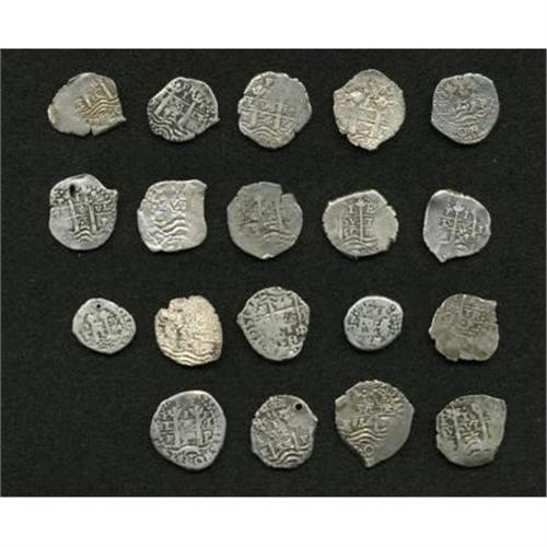 <B>Felipe IV cob 1 Real Date Collection,</B></I> KM13, nineteen coins in all, a wonderful selection, all with dates from 1654-1660 plus an undated transitional type of 1652 (holed.) Grades vary from VG to nice VF, with one piece noticeably corroded and three holed. <B>Sold as is, no return lot.</B></I><BR><BR><b>Shipping:</b> Coins & Currency (<a target="_blank" href="http://www.heritageauctions.com/common/shipping.php">view shipping information</a>)