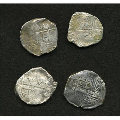 <B>Felipe IV cob 4 Reales - Foursome,</B></I> KM17a, four undated examples of this early type, some with visible P mintmark and/or assayer including TR. Conditions are crude Fine to F-VF with none holed or mounted. <B>Sold as is, no return lot.</B></I> <BR><BR><b>Shipping:</b> Coins & Currency (<a target="_blank" href="http://www.heritageauctions.com/common/shipping.php">view shipping information</a>)