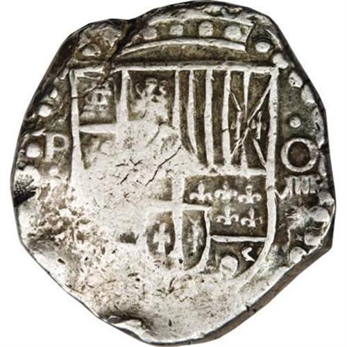 <B>Felipe IV cob 8 Reales 1628P,</B></I> KM19a, crude VF, nicely toned and fully original, clear P mintmark but the assayer is not struck up (would be P or T), the lower portion of all four digits in the date is visible in the reverse legend at 10-11 o'clock. A very decent example and rare with readable date.<BR><BR><b>Shipping:</b> Coins & Currency (<a target="_blank" href="http://www.heritageauctions.com/common/shipping.php">view shipping information</a>)