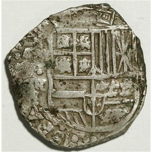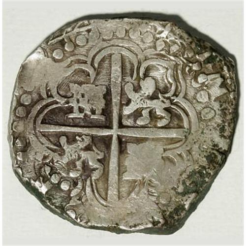 <B>Felipe IV cob 8 Reales 1644P-FR,</B></I> KM19a, crude VF, lightly porous with some surface porosity, the P mintmark is not clear but the assayer FR is quite bold with the top of the F extending to the right of the underlying R. Very rare assayer! The 44 of the date is virtually fully readable in the reverse legend.<BR><BR><b>Shipping:</b> Coins & Currency (<a target="_blank" href="http://www.heritageauctions.com/common/shipping.php">view shipping information</a>)