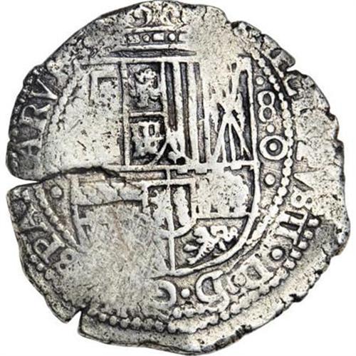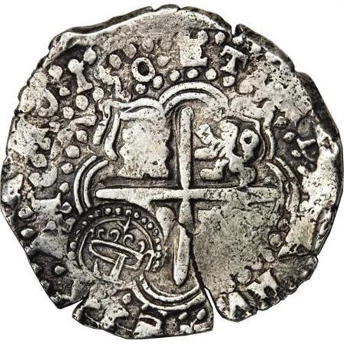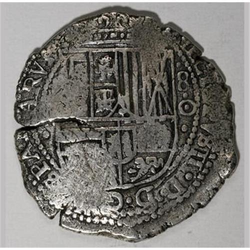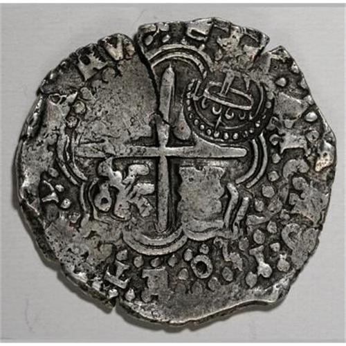 <B>Felipe IV cob 8 Reales 1650P-O With Counterstamp,</B></I> KM19b, crude VF with a flan crack, P mintmark not struck up but with a bold O with central dot assayer, clear 50 date on the reverse, and exceptionally bold crown over L counterstamp. The L appears to be almost retrograde on this example.<BR><BR><b>Shipping:</b> Coins & Currency (<a target="_blank" href="http://www.heritageauctions.com/common/shipping.php">view shipping information</a>)