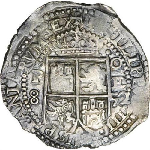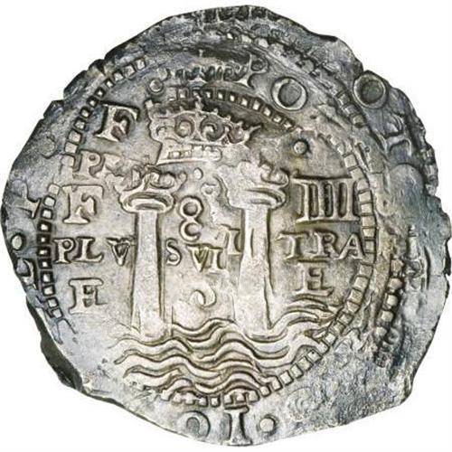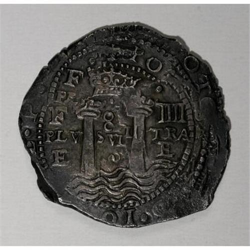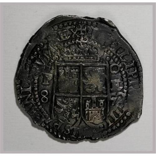 <B>Felipe IV cob 8 Reales 1652P-E Transitional,</B></I> KM-A20.3, superb XF, surfaces dark and lightly porous, but a magnificent example of the Type III transitional 8 Reales with the characteristic E DOT E flanking the pillars, and reverse A with the date 52 to the right of the coat of arms. Ex-Paul Karon Collection and Ponterio 106, lot 1148. Believed to have been recovered from the Gilt Dragon. 25.91 grams.<BR><BR><b>Shipping:</b> Coins & Currency (<a target="_blank" href="http://www.heritageauctions.com/common/shipping.php">view shipping information</a>)