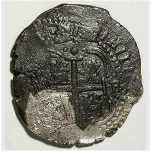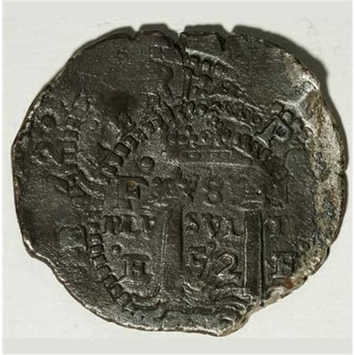 <B>Felipe IV cob 8 Reales 1652P-E Transitional,</B></I> KM-A20.5, VF, dark with sea salvage oxidation, type V with F 8 IIII above E 52 E, partial date 52 in the obverse legend, reverse B with P-E flanking the coat of arms. Double-struck on both sides, but still very collectible. Ex-Ponterio 106, lot 1151.<BR><BR><b>Shipping:</b> Coins & Currency (<a target="_blank" href="http://www.heritageauctions.com/common/shipping.php">view shipping information</a>)
