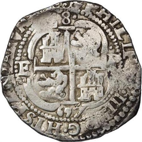 <B>Felipe IV cob 8 Reales 1657P-E,</B></I> KM21, nice VF, an exceptional example with three clear dates including four full digits in the obverse peripheral legend, complete reverse cross and considerable legends readable on both sides. A perfect type coin for this series.<BR><BR><b>Shipping:</b> Coins & Currency (<a target="_blank" href="http://www.heritageauctions.com/common/shipping.php">view shipping information</a>)