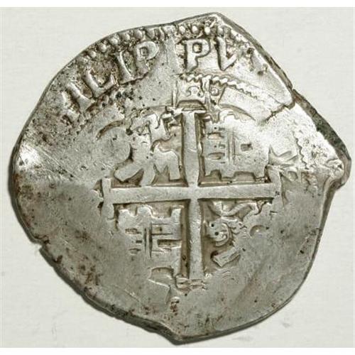 <B>Felipe IV cob 8 Reales 1664P-E,</B></I> KM21, crude F-VF, not a salvage example, two dates with bold assayer E, mintmark not struck up, virtually full cross.<BR><BR><b>Shipping:</b> Coins & Currency (<a target="_blank" href="http://www.heritageauctions.com/common/shipping.php">view shipping information</a>)