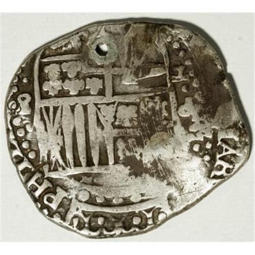 <B>Felipe IV cob 8 Reales - Dated Pair,</B></I> KM19a, 1648(P-Z), crude Fine with surface patination, the mintmark and assayer are not clear, but the full four digit date is readable in the reverse legend, very scarce when dated, and 1645P-T, F-VF, holed, rare assayer, Juan Ximenez de Tapia. The date is represented by the 45 in the reverse legend. This example also has the plain crown counterstamp without the circle of dots on the reverse. <B>Sold as is, no return lot.</B></I><BR><BR><b>Shipping:</b> Coins & Currency (<a target="_blank" href="http://www.heritageauctions.com/common/shipping.php">view shipping information</a>)