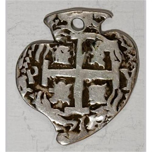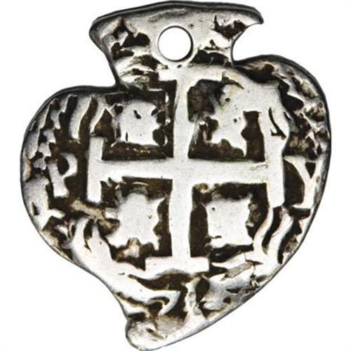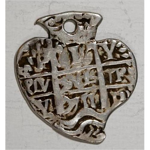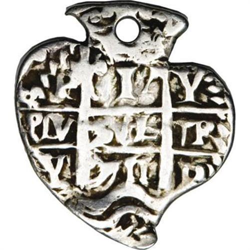 <B>Felipe V Heart-shaped cob 1 Real 1711P-Y,</B></I> type of KM28, F-VF, holed at the top. The obverse is well-centered with bold date, mintmarks and assayer's initials. The reverse is also very attractive with the P and Y flanking the cross and the second date below. 3.54 grams. Very rare.<BR><BR><b>Shipping:</b> Coins & Currency (<a target="_blank" href="http://www.heritageauctions.com/common/shipping.php">view shipping information</a>)