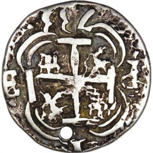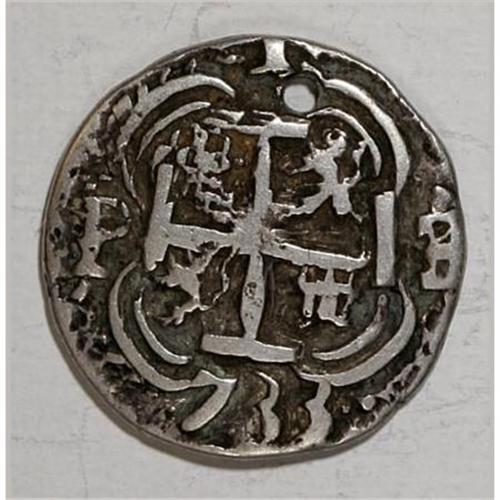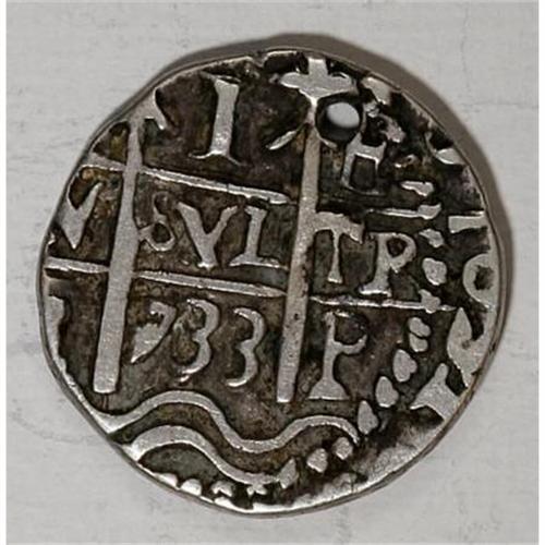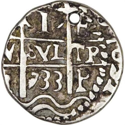<B>Felipe V Royal cob 1 Real 1733P-E,</B></I> KM-R28a, choice VF, small hole at the top. A very attractive example of this rare round presentation coinage with bold date, mintmark and assayer on the obverse, and a particularly nice reverse with fully readable P-E and date below the cross. 3.42 grams.<BR><BR><b>Shipping:</b> Coins & Currency (<a target="_blank" href="http://www.heritageauctions.com/common/shipping.php">view shipping information</a>)