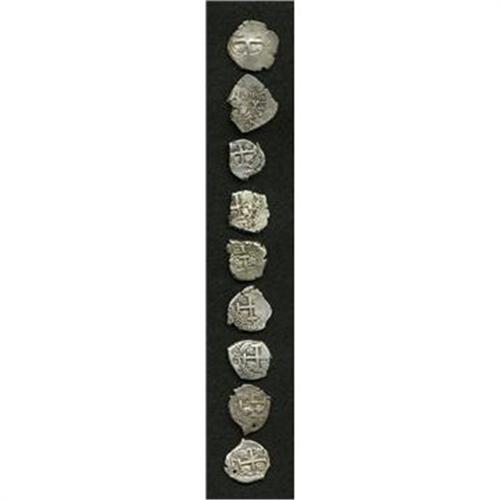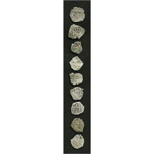 <B>Felipe V cob 1 Real Assortment,</B></I> KM28, a useful group comprising: 1732P-YA, two dates, 1733P-YA, holed, 1738P-M, two dates, 1743P-C, 1746P-Q, holed but full cross, 1747P-Q (2), and two with uncertain dates but clear Y assayers. Conditions range from Fine to VF and the coins are undamaged except as noted. <B>Sold as is, no return lot.</B></I><BR><BR><b>Shipping:</b> Coins & Currency (<a target="_blank" href="http://www.heritageauctions.com/common/shipping.php">view shipping information</a>)