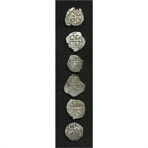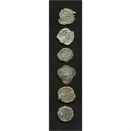 <B>Felipe V cob 1 Real Date Run,</B></I> KM28, six very nice examples featuring: 1704Y, 1726 with clear P and often attributed to Luis I, 1730P-M, 1732P-M, very bold with two dates and full cross, 1735P-E, virtually round planchet, and 1736P-E, bold details on both sides including a full cross. An exceptional selection with conditions generally VF. <B>Sold as is, no return lot.</B></I><BR><BR><b>Shipping:</b> Coins & Currency (<a target="_blank" href="http://www.heritageauctions.com/common/shipping.php">view shipping information</a>)