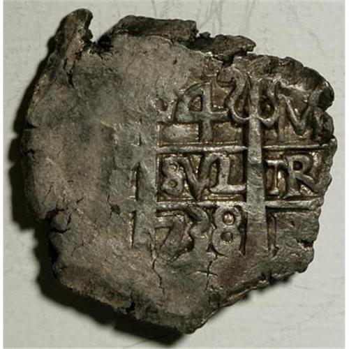 <B>Felipe V cob 4 Reales 1738-M,</B></I> KM30, very crude VF, two clear dates, bold assayer and somewhat readable mintmark. Scarce denomination and a nice collectible example.<BR><BR><b>Shipping:</b> Coins & Currency (<a target="_blank" href="http://www.heritageauctions.com/common/shipping.php">view shipping information</a>)