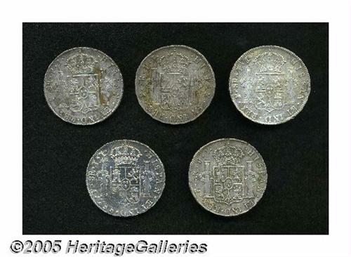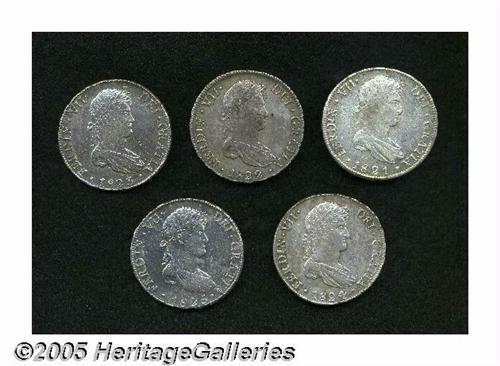 <B>Ferdinand VII 8 Reales - Better Grades, </B></I>KM84, 1821-PJ, choice toned XF-AU, 1822-PJ, bold VF-XF, nicely toned and attractive, 1823-PJ, nice AU, boldly struck, cleaned and a few small surface marks, 1824-PJ, very sharply struck XF-AU, lightly ton