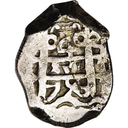 <B>Fernando VI cob 4 Reales 1756P-Q,</B></I> KM39, nice original VF, crudely struck but with two clear dates and sharp assayer initial Q on both sides. Very scarce type and the first we have offered.<BR><BR><b>Shipping:</b> Coins & Currency (<a target="_blank" href="http://www.heritageauctions.com/common/shipping.php">view shipping information</a>)