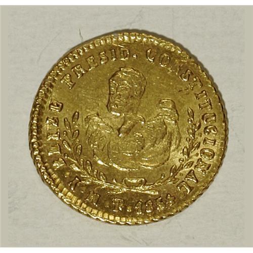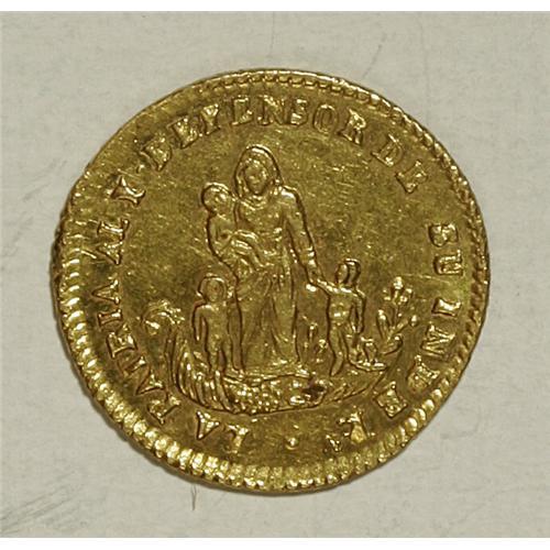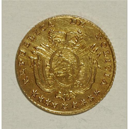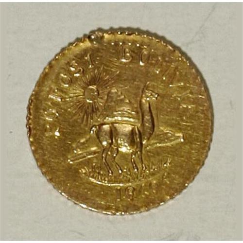 <B>Gold Proclamation trio including:</B></I> small gold with trace of mount at 12 o'clock, 1860 around coat of arms/wreath around liberty cap, Burn-84, XF details, 10 mm, .50 g; 1 Scudo size gold medal 1854, Burn-65.1, Woman with babe in arms and children at feet/Bust of Belzu in clouds with date below, 14 mm, 1.65 g, XF-AU; and an unlisted gold medal 1846, Arms of Bolivia/ Llama standing right with POTOSI above and 1846 below, 14 mm, 1.83 g, XF.<BR><BR><b>Shipping:</b> Coins & Currency (<a target="_blank" href="http://www.heritageauctions.com/common/shipping.php">view shipping information</a>)