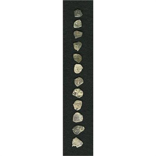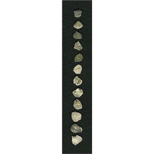 <B>Potosi cob 1/2 Real Assortment,</B></I> twelve dated examples featuring: 1671, 1684, 1689, 1697, 1719, 1742, 1745, 1747, 1751, 1755, 1757 and 1768. Some of the dates require a little imagination, but this is a useful lot and only one piece is damaged (tiny hole.) Grades vary from Good to Fine. <B>Sold as is, no return lot.</B></I><BR><BR><b>Shipping:</b> Coins & Currency (<a target="_blank" href="http://www.heritageauctions.com/common/shipping.php">view shipping information</a>)