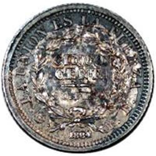 <B>Republic 5 Centavos 1884-FE, </B></I>KM157.2, toned Proof with deep charcoal gray patina, slightly mottled on the reverse. Very rare in Proof. A set containing the 5, 10, 20 and 50 Centavos in the Whittier Collection, June 2006, brought $4887.<BR><BR><b>Shipping:</b> Coins & Currency (<a target="_blank" href="http://www.heritageauctions.com/common/shipping.php">view shipping information</a>)