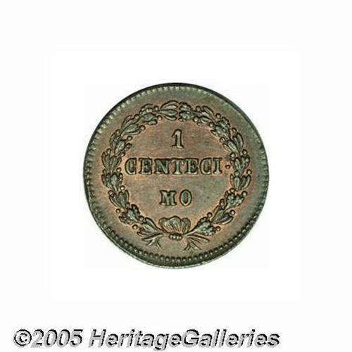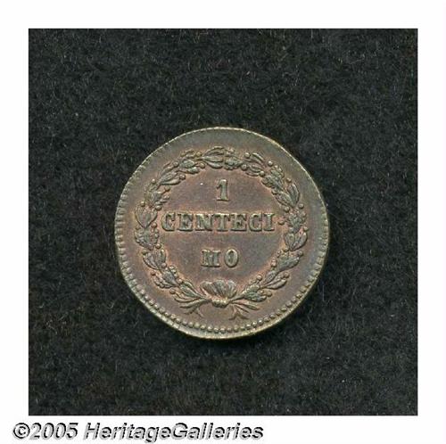 <B>Republic Centecimo 1864, </B></I>KM147, choice XF-AU, boldly struck and with original mint luster - very rare grade for this rare one-year type!