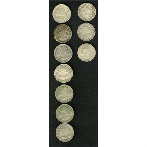 <B>Republic Paz Mint 4 Soles Group,</B></I> KM125 "Potosi" bust, 1853J, nice XF-AU, 1854F, cleaned VF and XF, KM130 1855F, AVF, VF and crude XF, 1856F Fine, 1857/6P VF, 1857P VF and 1858P crude AXF. Very high catalog value ($1250!) <B>Sold as is, no return lot.</B></I><BR><BR><b>Shipping:</b> Coins & Currency (<a target="_blank" href="http://www.heritageauctions.com/common/shipping.php">view shipping information</a>)