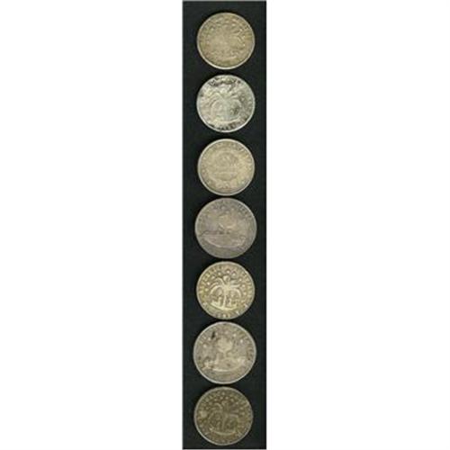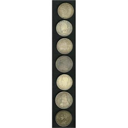 <B>Republic Silver Crown Assortment,</B></I> seven coins including: KM97 8 Soles 1827JM large alpacas, lovely toned AU, well-struck and very attractive, and 1832JL, VF; KM109 8 Soles 1849FM, choice toned AU, fully original and quite appealing; KM138.6 8 Soles, 1860FJ, VF, 1861FJ, VF, and 1862FP, cleaned VF with minor patination; and KM160.1 Boliviano 1872FE, toned AU. <B>Sold as is, no return lot.</B></I> <BR><BR><b>Shipping:</b> Coins & Currency (<a target="_blank" href="http://www.heritageauctions.com/common/shipping.php">view shipping information</a>)