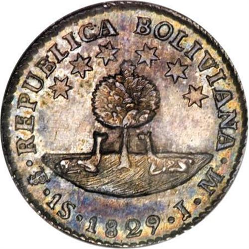 Bolivia Republic Sol 1829JM, KM94, MS63 NGC
