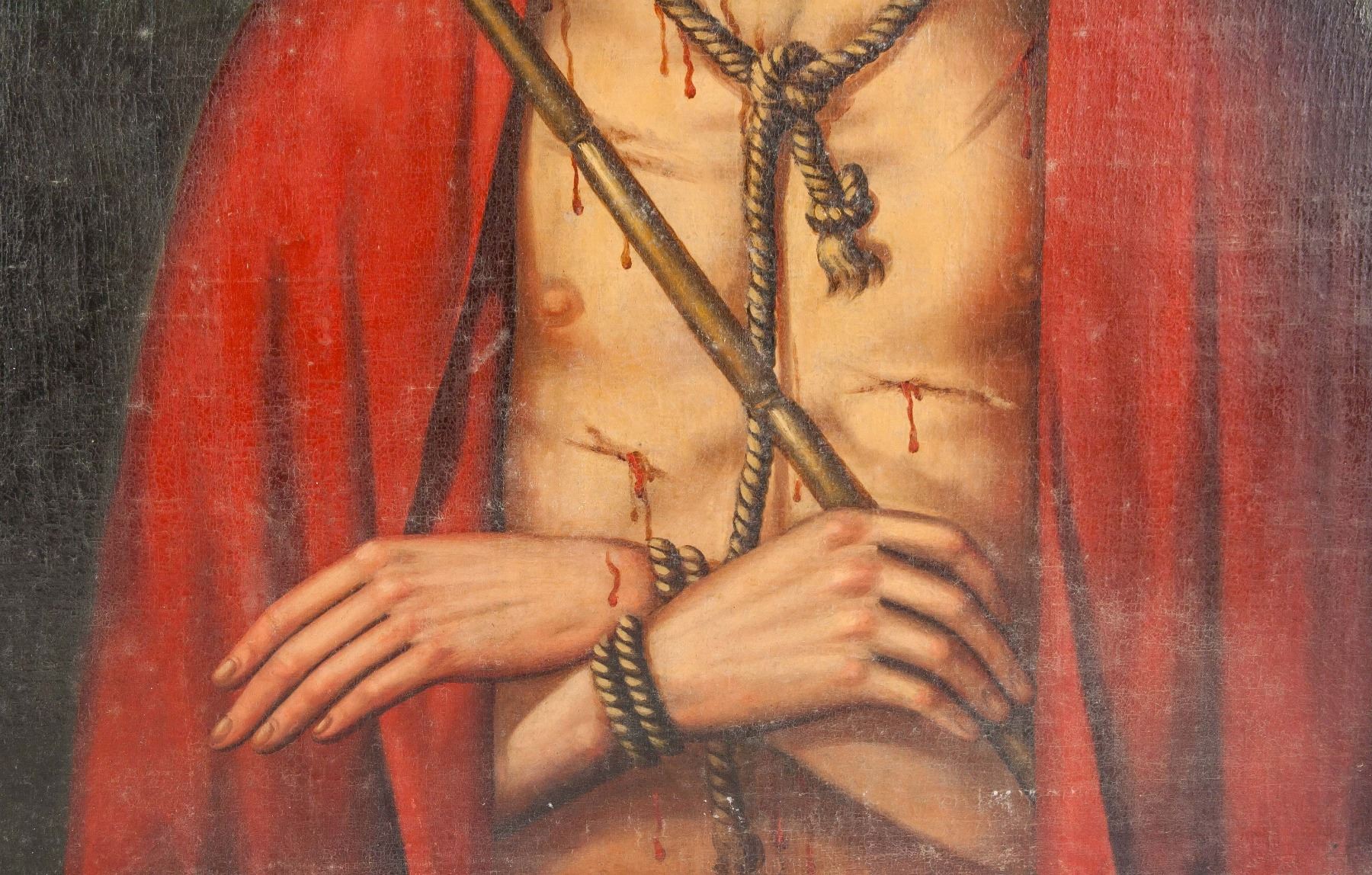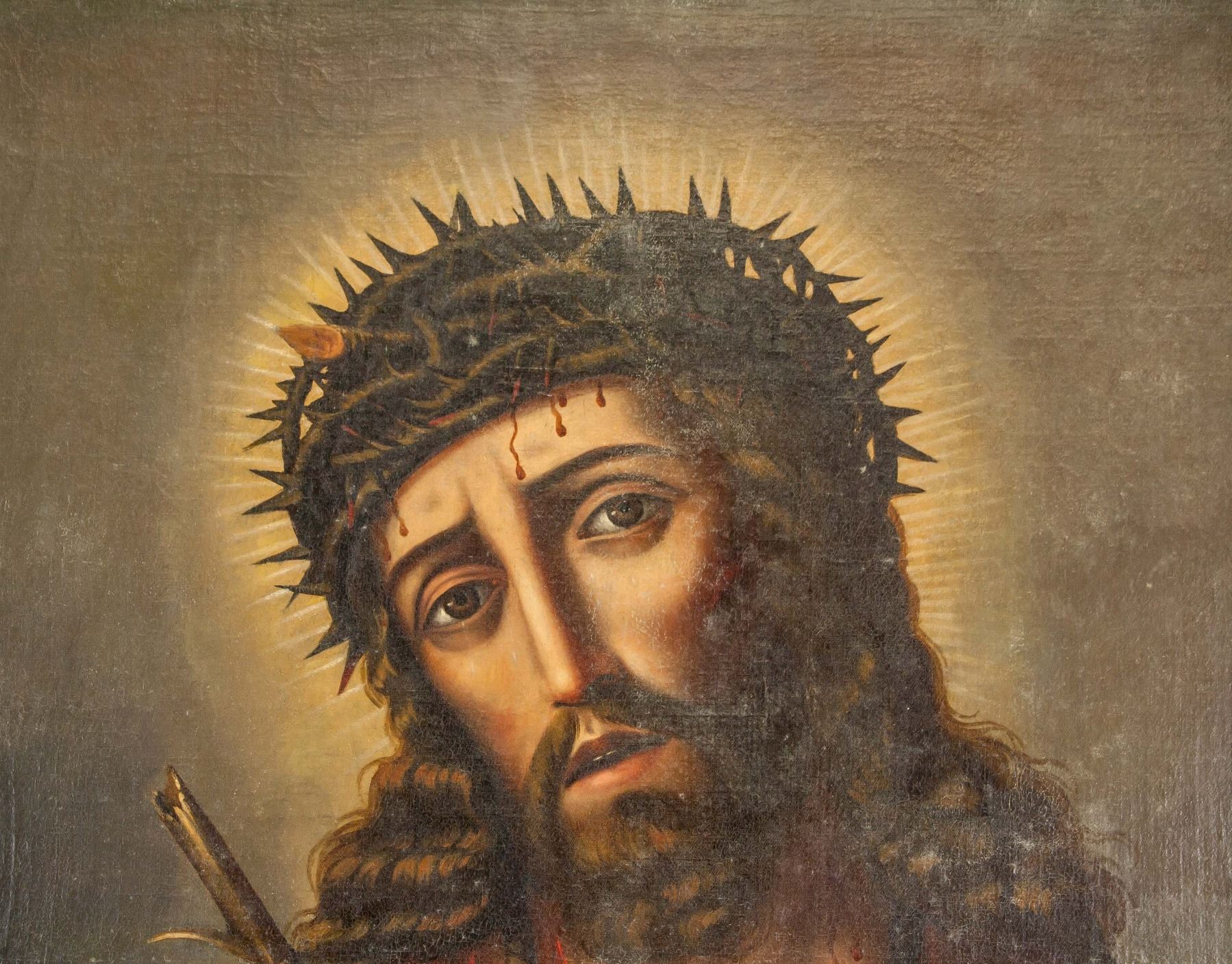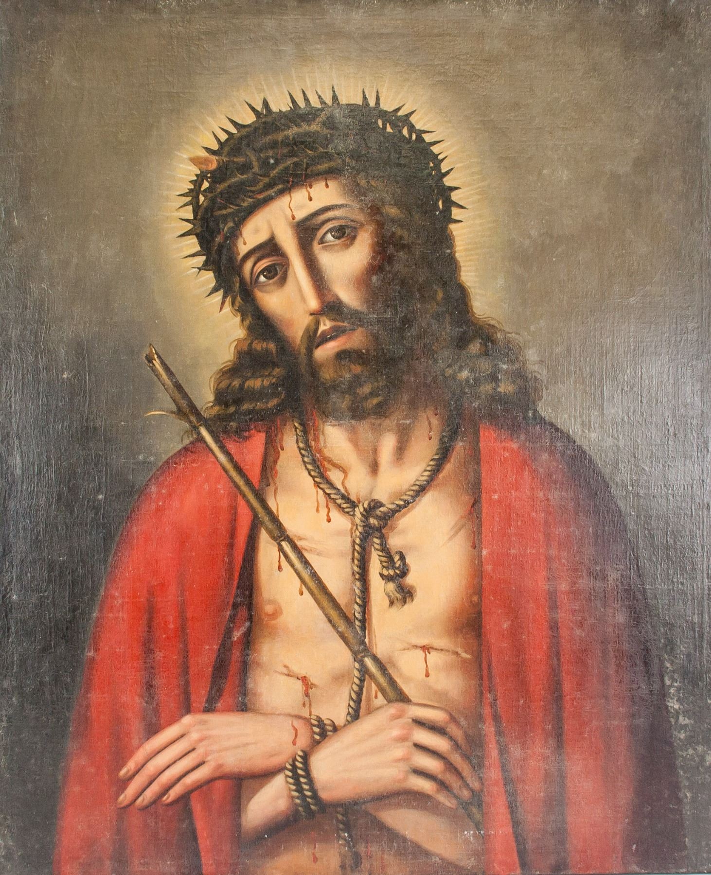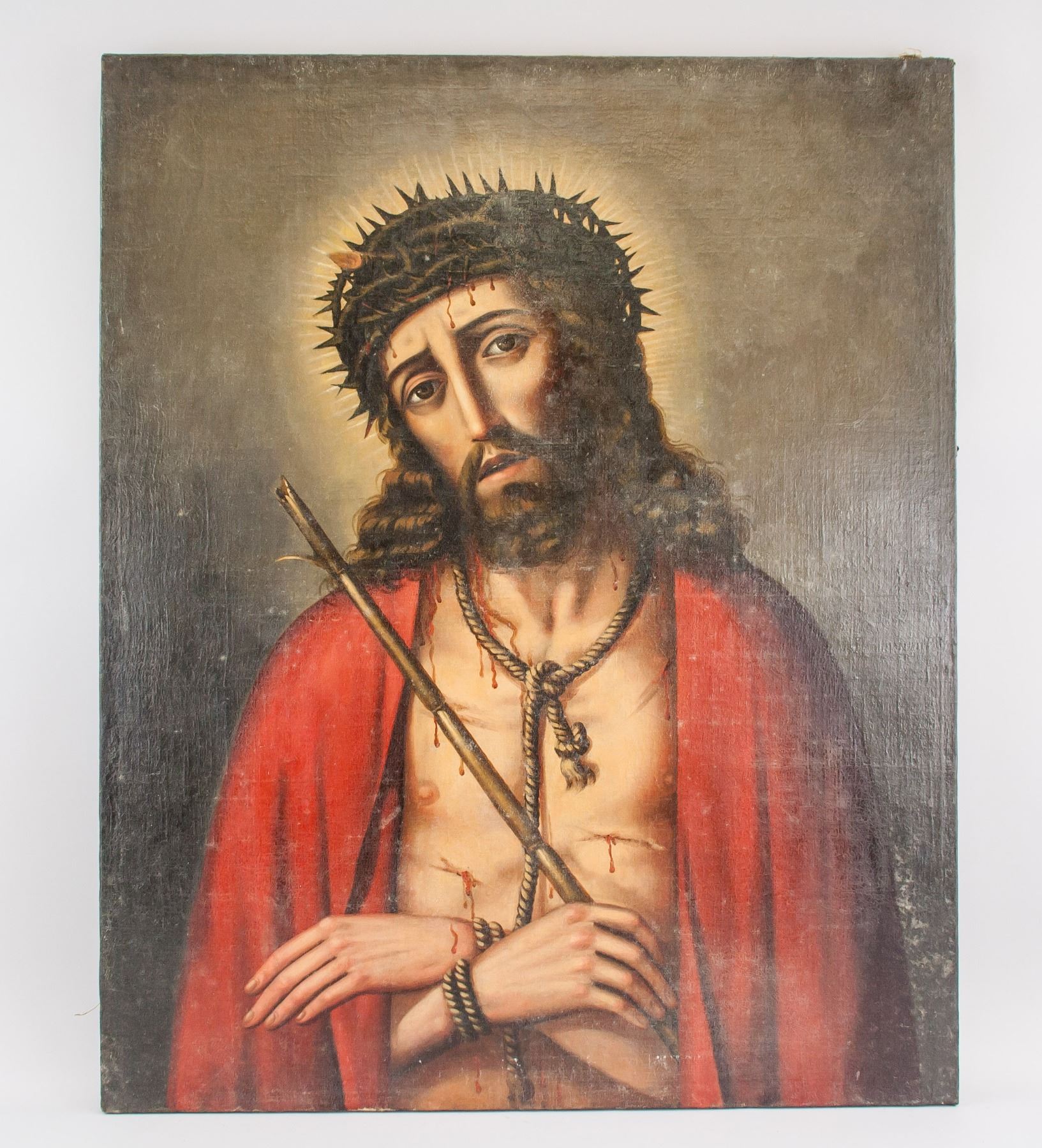 Oil on canvas, featuring Bolivian Christ. 32.25 x 26 inch (82 x 66 cm). Accompanied with x-ray negatives which displays that there is an underpainting beneath the oil on canvas painting of Christ. PROVENANCE: The Arwin Galleries, Detroit, Michigan, United States; thence by descent.