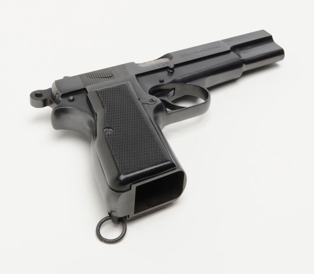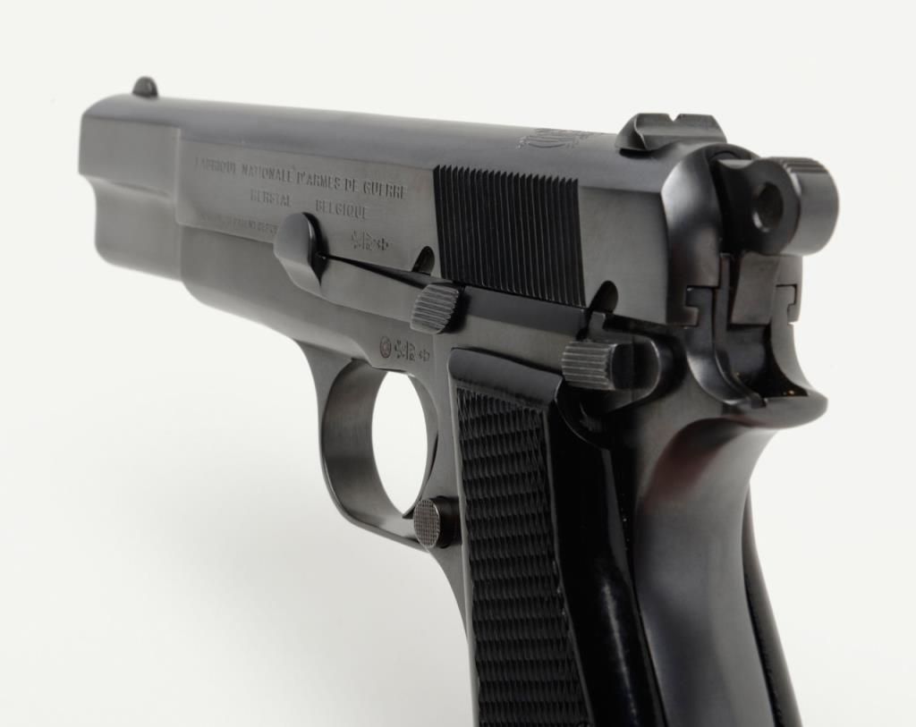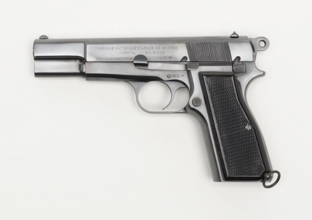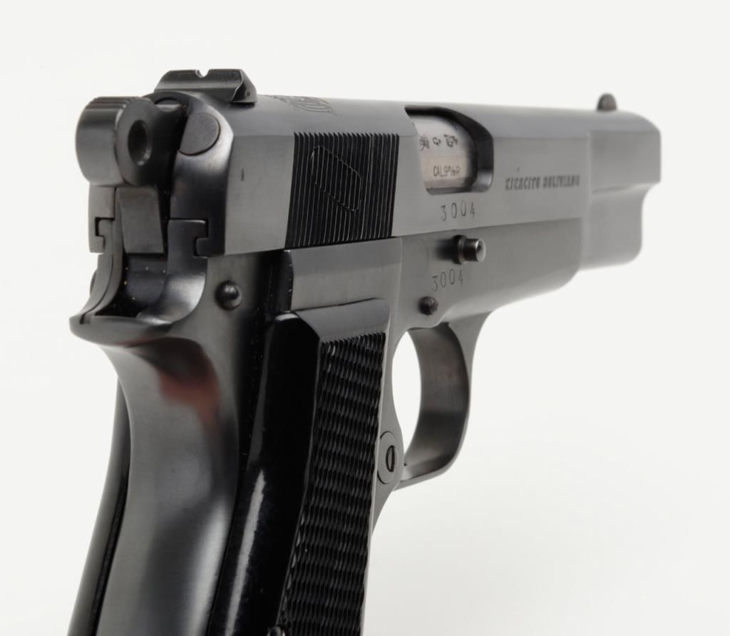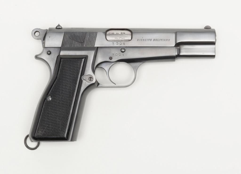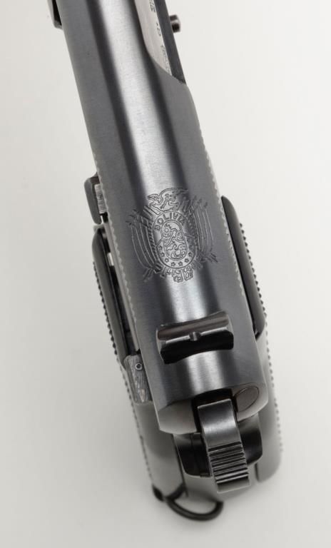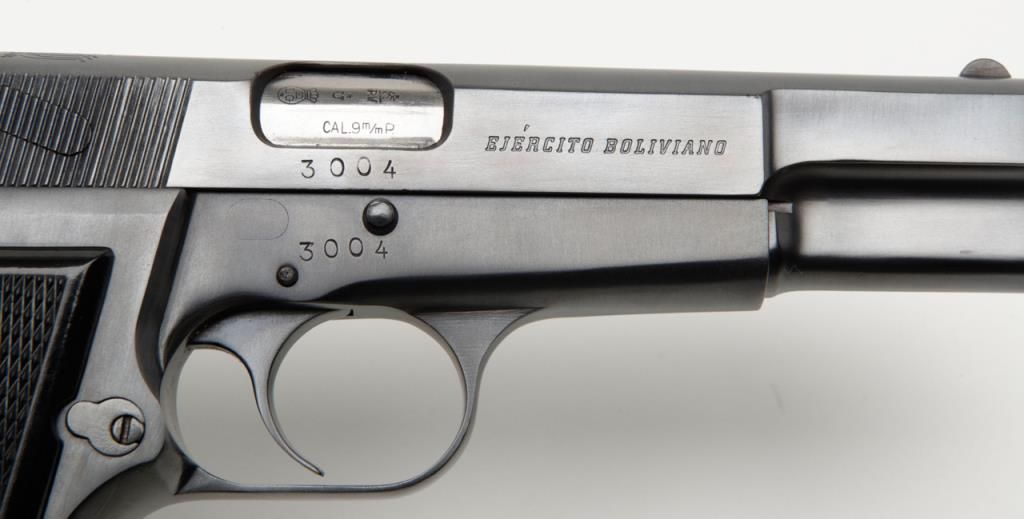 Bolivian contract Belgian made pre-World War II High Power showing Bolivian markings and on the slide and crest on top. The pistol has been professionally restored to mint condition by a Master Gunsmith for a prominent semi-automaticpistol collector. Serial number 3004. Our consignor in Las Vegas will ship original clip to states where it is legal. Note 14 shot high cap mag is not legal in California, New Jersey etc. Est.: $950-$1900