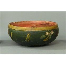 painted wood, 18 th / 19 th century, later painting dated 1826, owner's mark in bottom, diameter 13 cm; cracked edge
