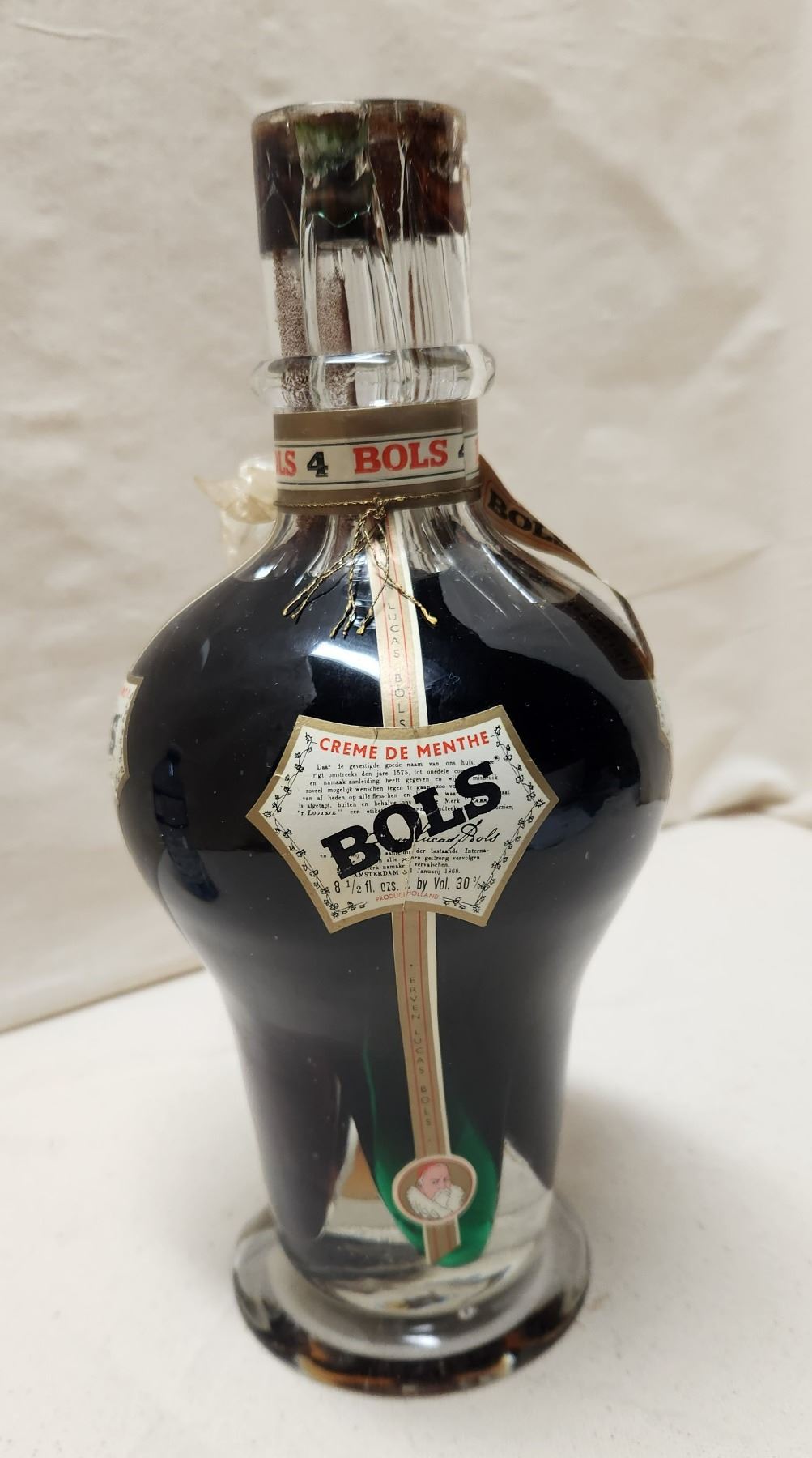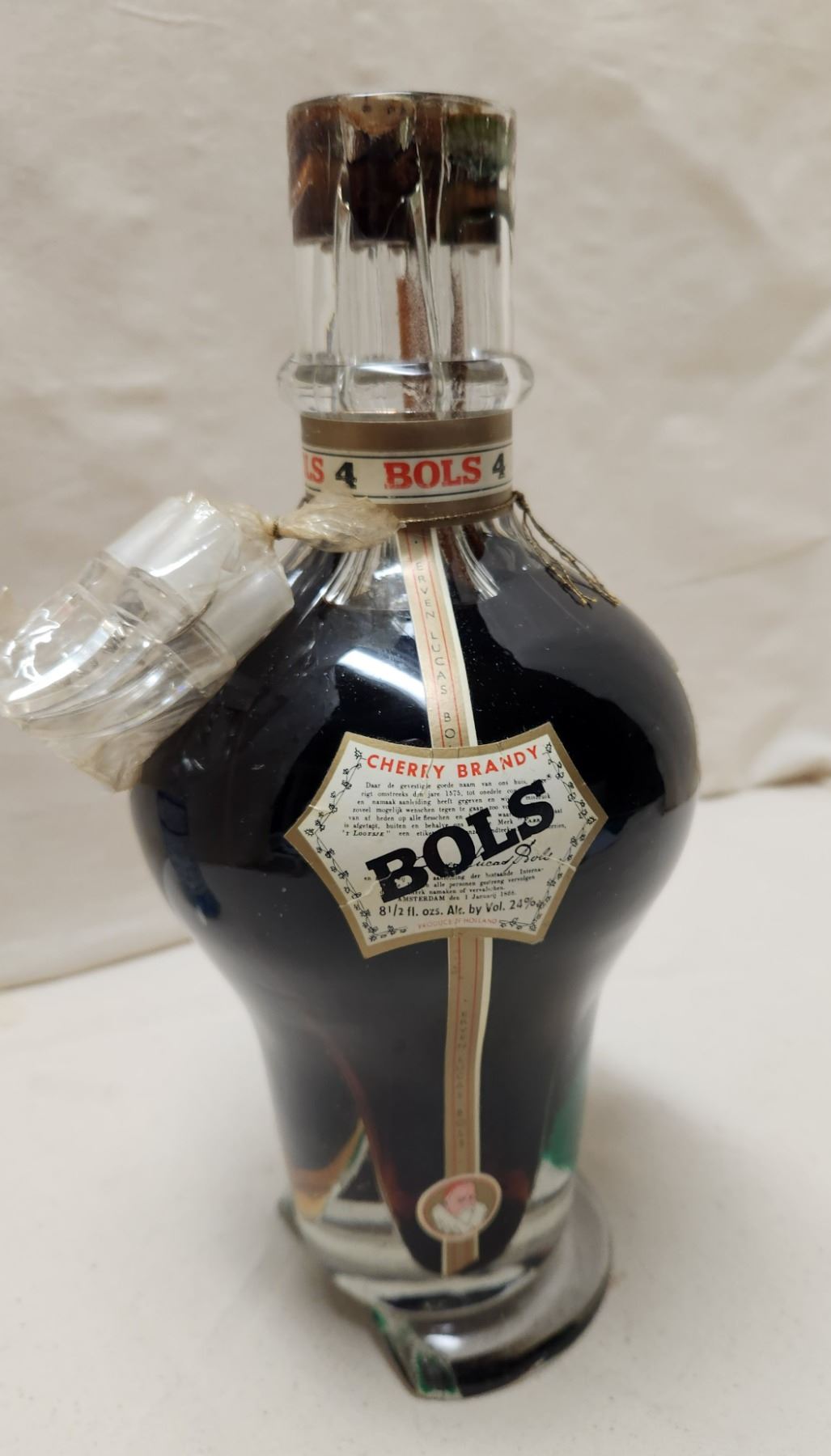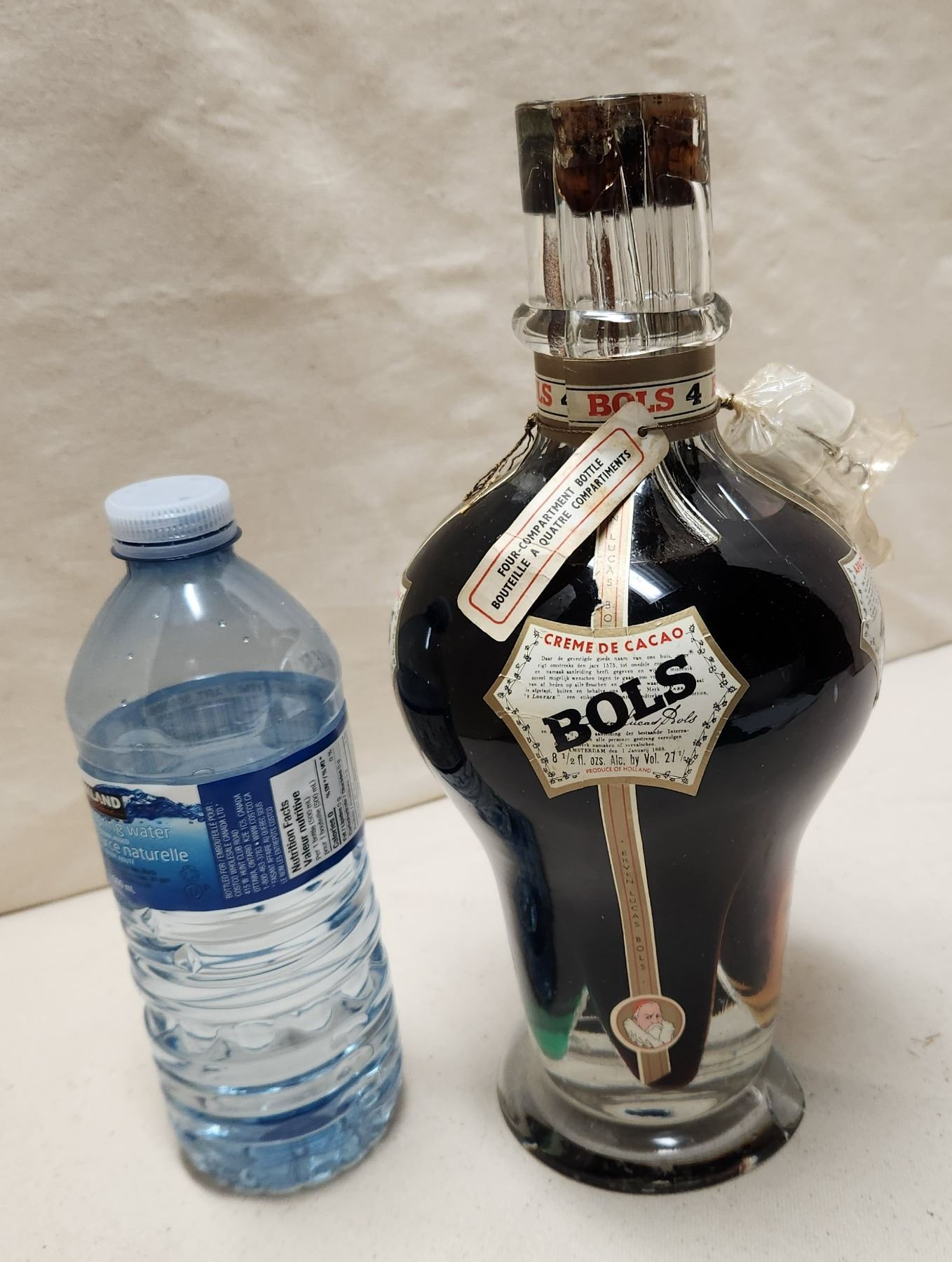 Four compartments including Creme de Cacao (27% alc./vol.), Apricot Brandy (29% alc./vol.) Cherry Brandy (24% alc./vol.), Creme de Menthe (30% alc./vol.) and Parfait Amour (29% alc./vol.) Each compartment is 8 1/2 fl. oz. Minor damage to base of the bottle. (See pictures).