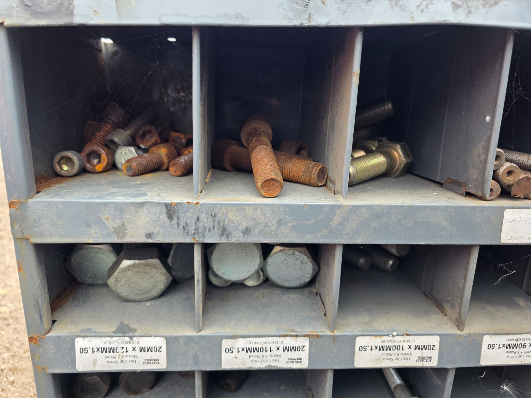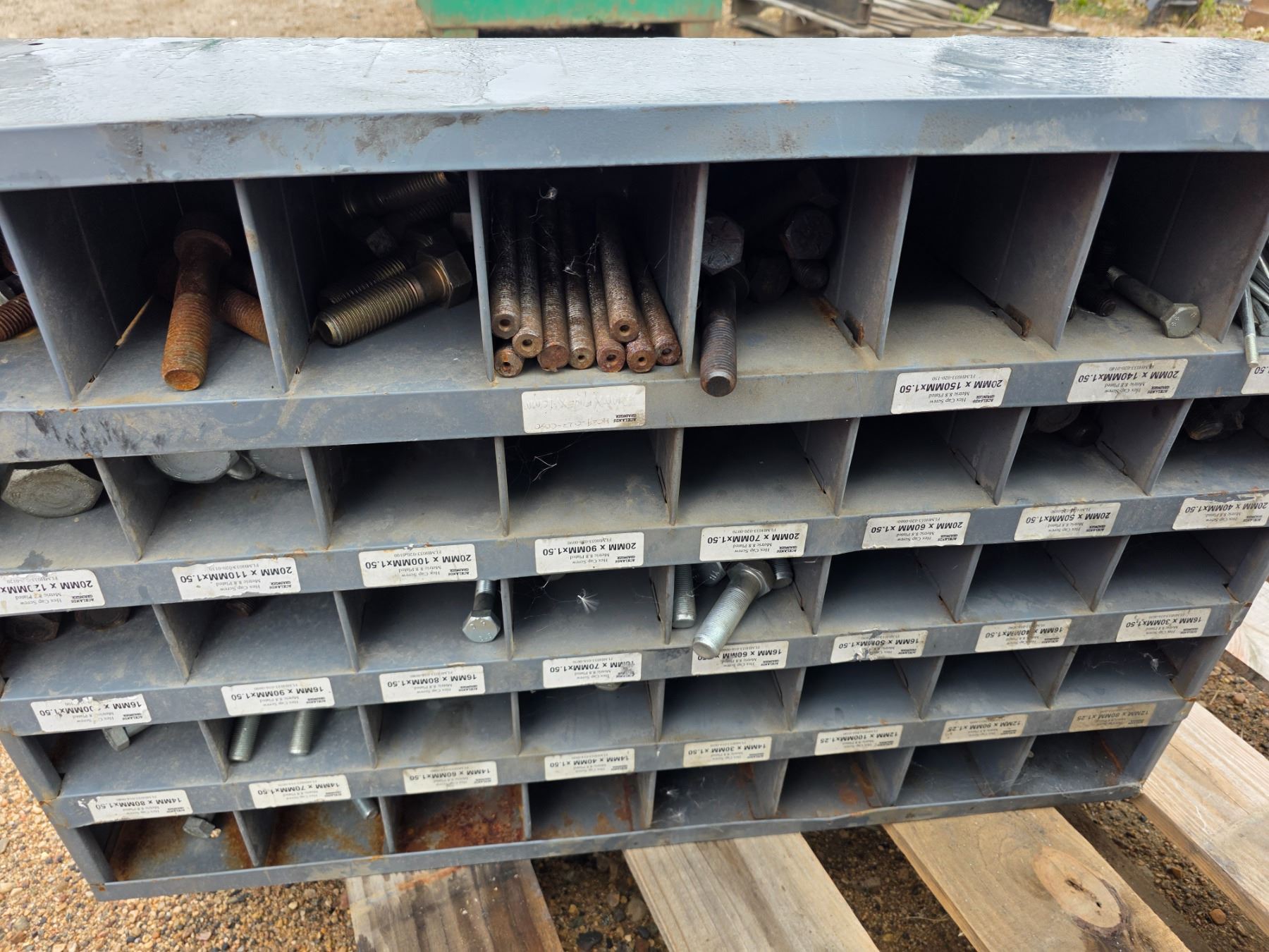 Bolt bin with contents- 34" by 9" by 22"H