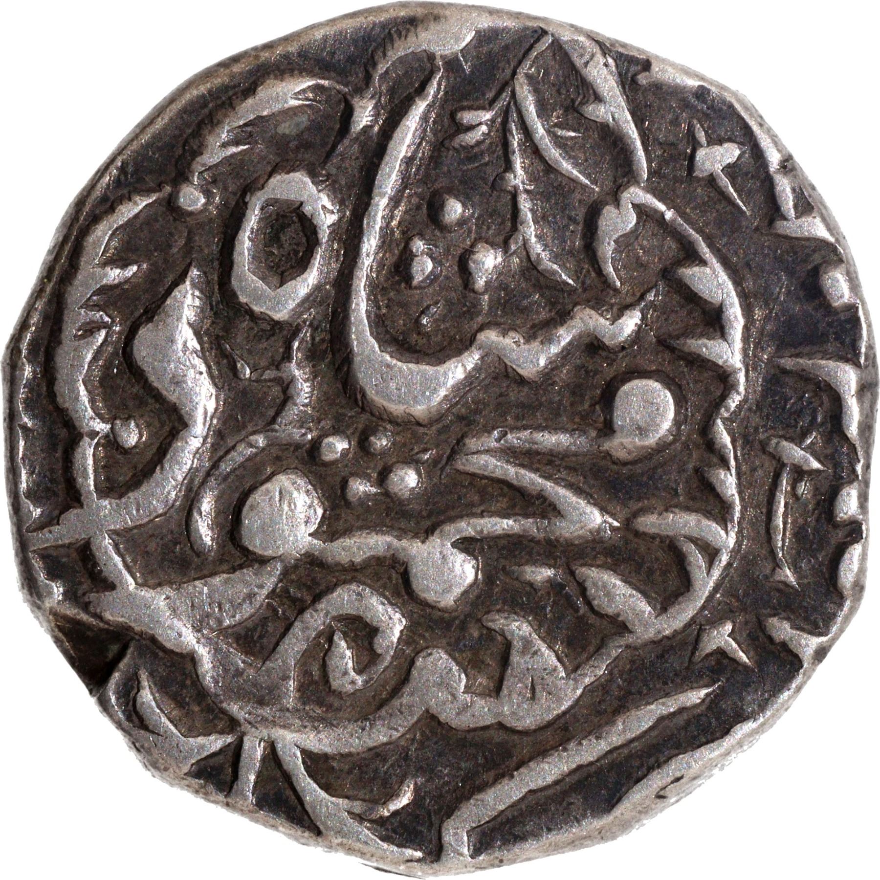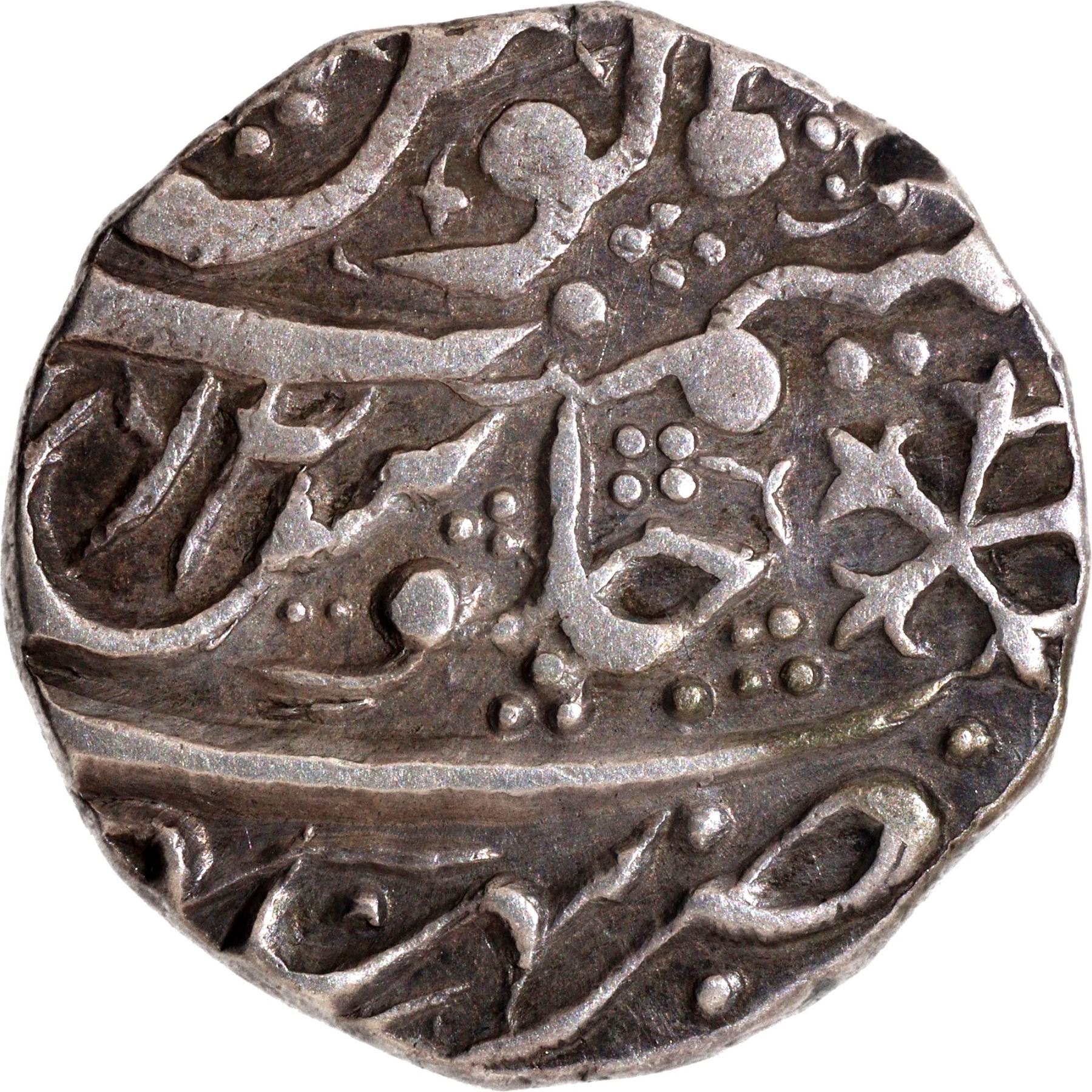 Bombay Presidency, Bhakkar Mint, Silver Rupee, AH (12)62, Floral type, Transitional Coinage in Sindh Province, In the name of Mahmud Shah Durrani, Obv: Persian legend "Mahmud Shah" within the foil, Rev: Persian legend "zarb Bhakkar" at the bottom, "(12)62 Hijri year" & "julus maimanat manus", 10.90g, 22.31mm, (Old KM # C12 /Stevens # 6.60), test marks, about extremely fine.