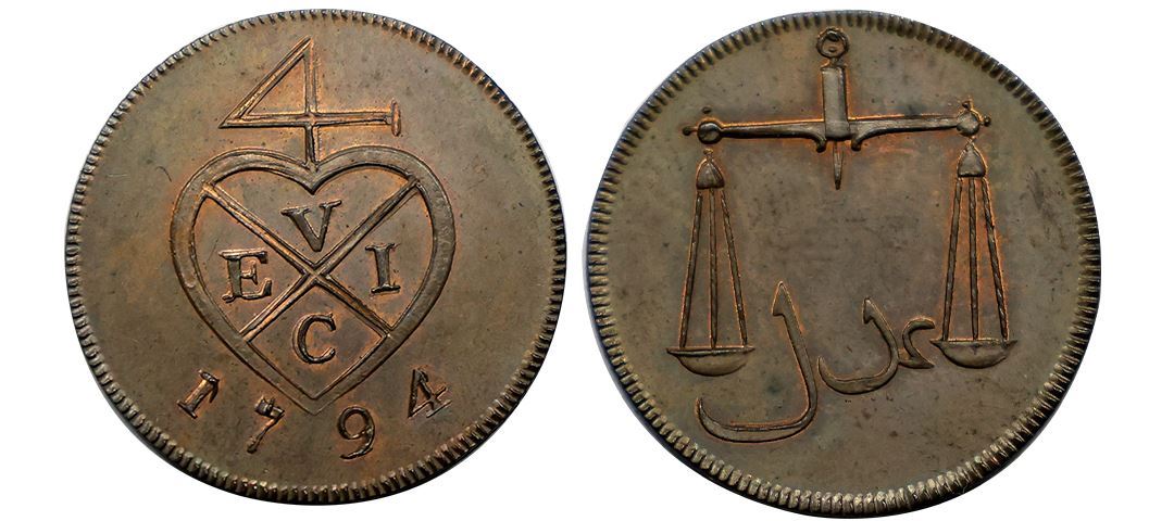 Bombay Presidency, Copper Proof Pice, 2.51 gms, Obv. Balemark, Rev. scales with adli, KM #193, Proof, very rare.