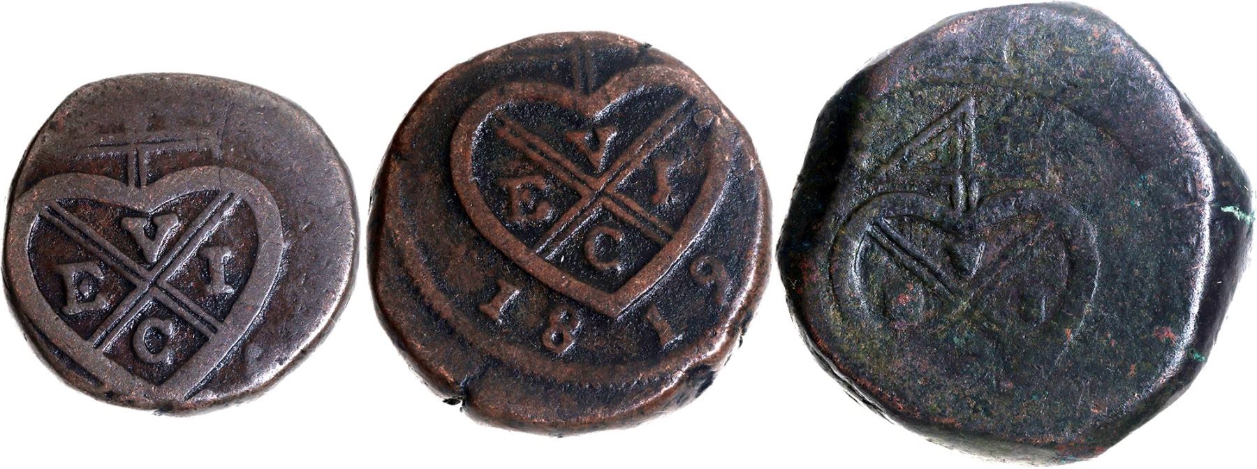 Bombay Presidency, Copper Set of 3 Coins, 1, 2 & 4 Pice, Obv: U.E.I Co bale mark, 1819 AD, Rev: scale value above Persian "Adal" (just), 10.30g, 21.10g, 42.20g & 20.20mm, 23.45mm, 27.75mm, (KM # 198, 200, 201 /Stevens # 3.50 /Prid # 156), about Very fine, Rare as a set.