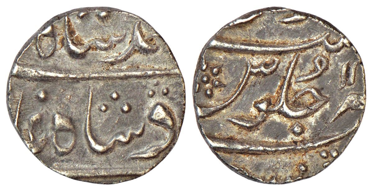 Bombay Presidency, Mumbai mint, silver ½ rupee, in the name of Muhammad Shah, RY 11 (curved 1's),