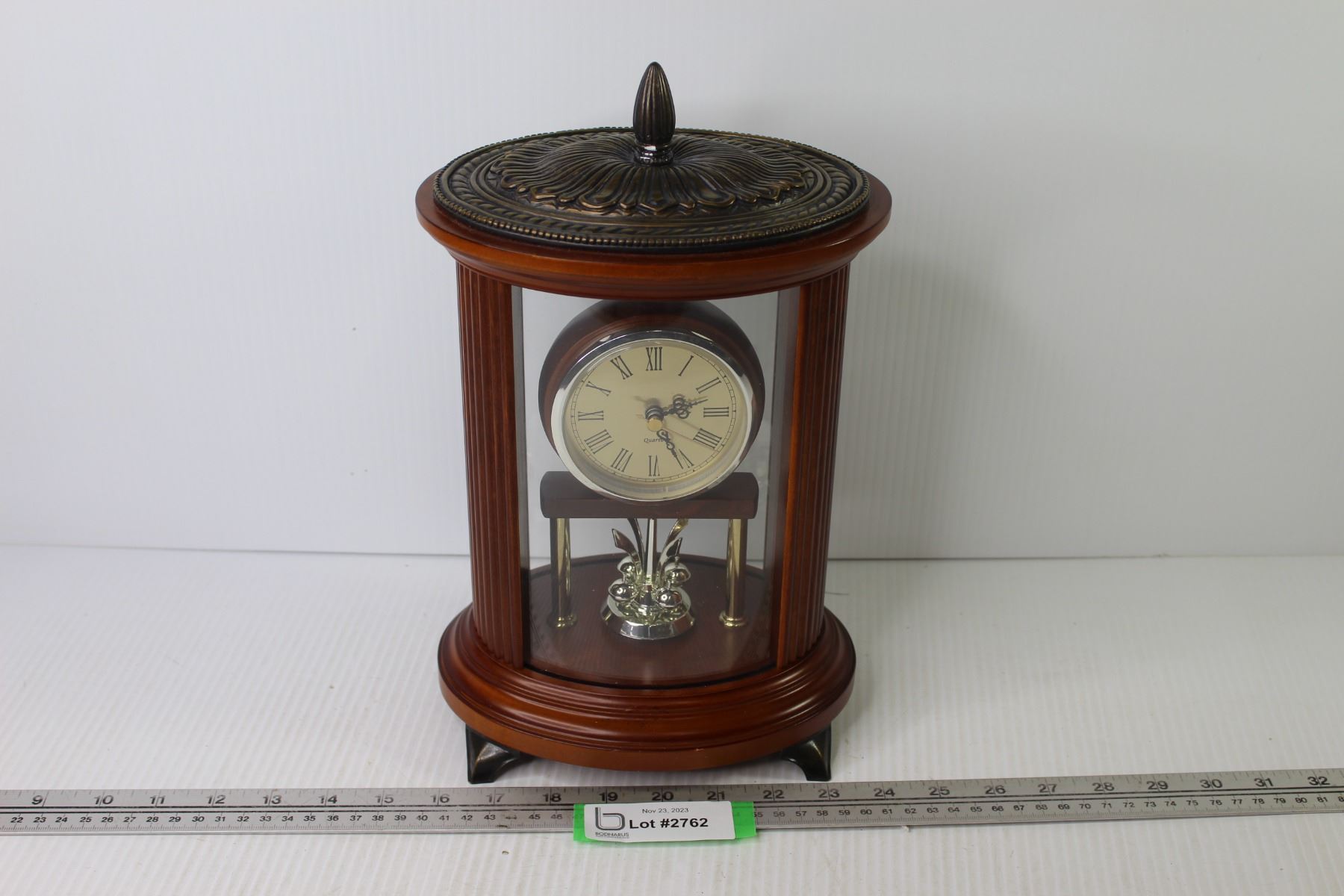 Bombay Quartz Clock Wooden Body w/Metal Legs & Top Piece (running)