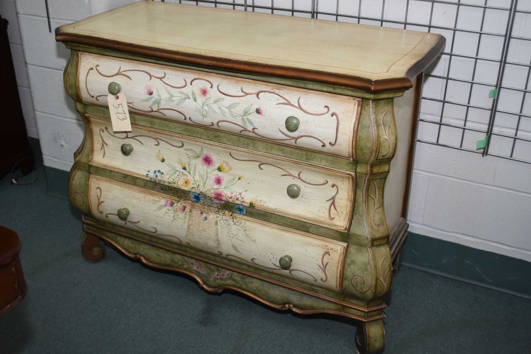 Bombe style three drawer painted chest