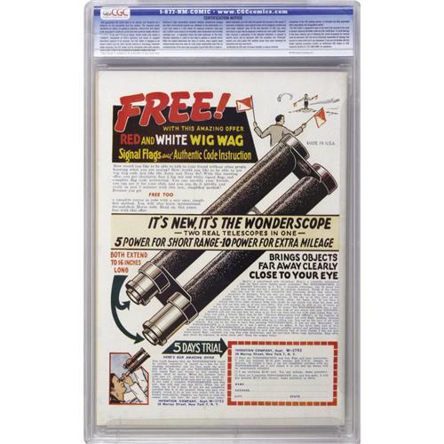 <B>Bomber Comics #1 (Elliot, 1944) CGC VF 8.0 Off-white to white pages.</B></I> Yes, believe it or not, Elliot, who brought out the first few issues of <B>Classic Comics</B></I>, did take a stab at the superhero/adventure genre as well. This is a nice, clean, high-grade copy. Overstreet 2006 VF 8.0 value = $506. CGC census 10/06: 1 in 8.0, 2 higher.<BR><BR><b>Shipping:</b> Slabbed Comic (<a target="_blank" href="http://www.heritageauctions.com/common/shipping.php">view shipping information</a>)