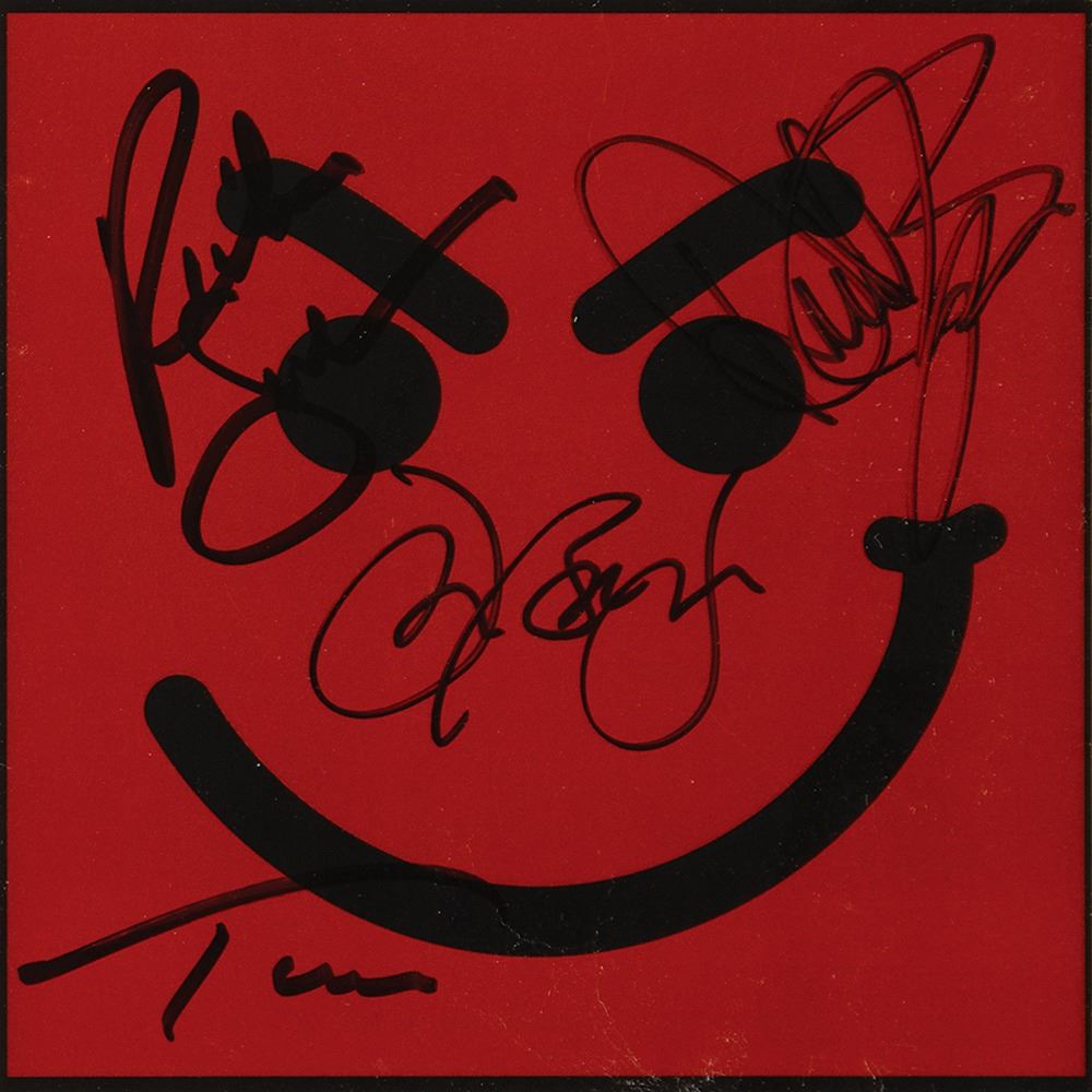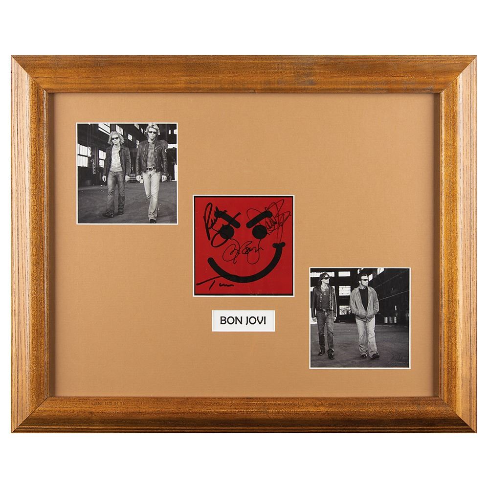 Have A Nice Day CD booklet, signed on the cover in black felt tip by all four members: Jon Bon Jovi, David Bryan, Richie Sambora, and Tico [Torres]. Archivally matted and framed to an overall size of 21 x 17. In fine condition.