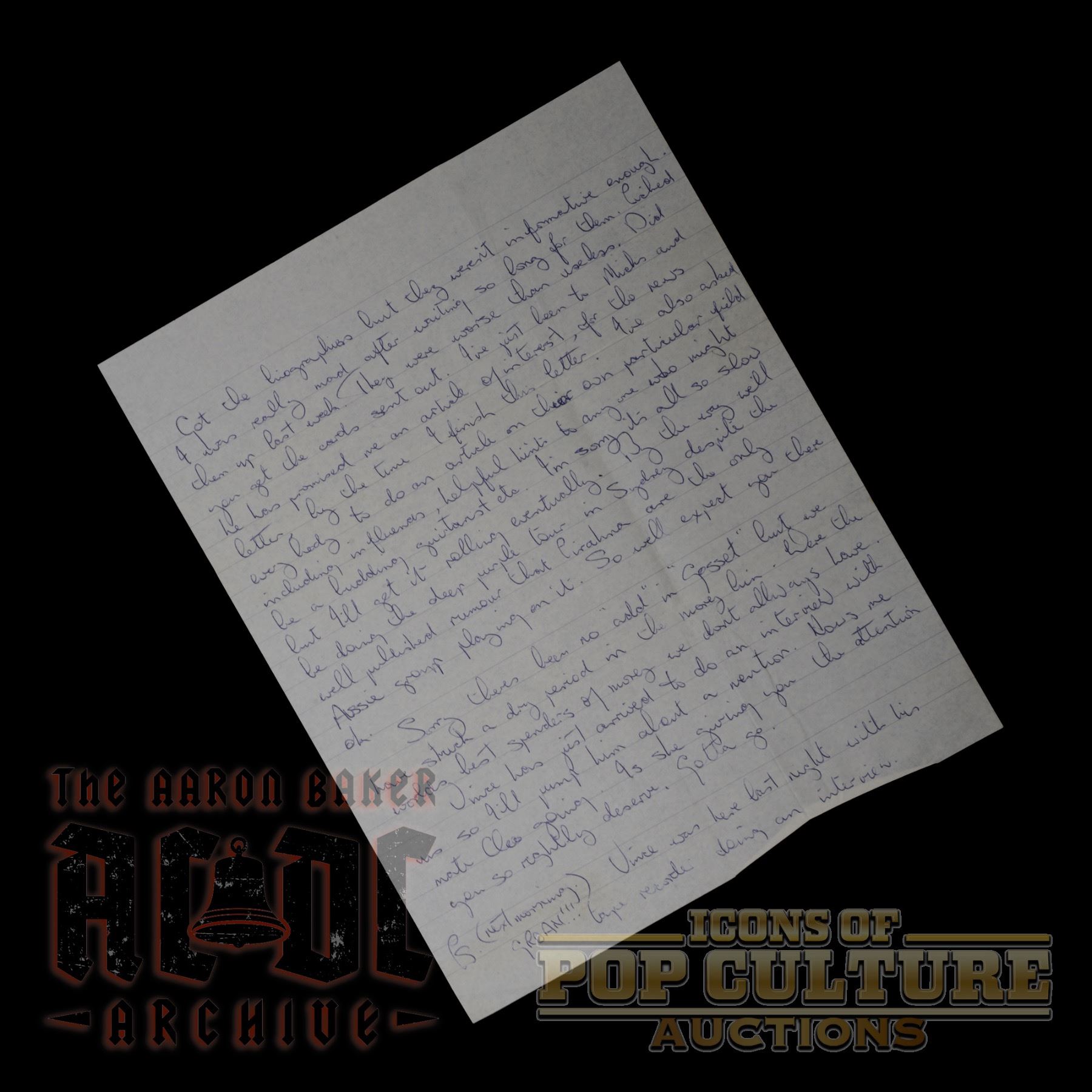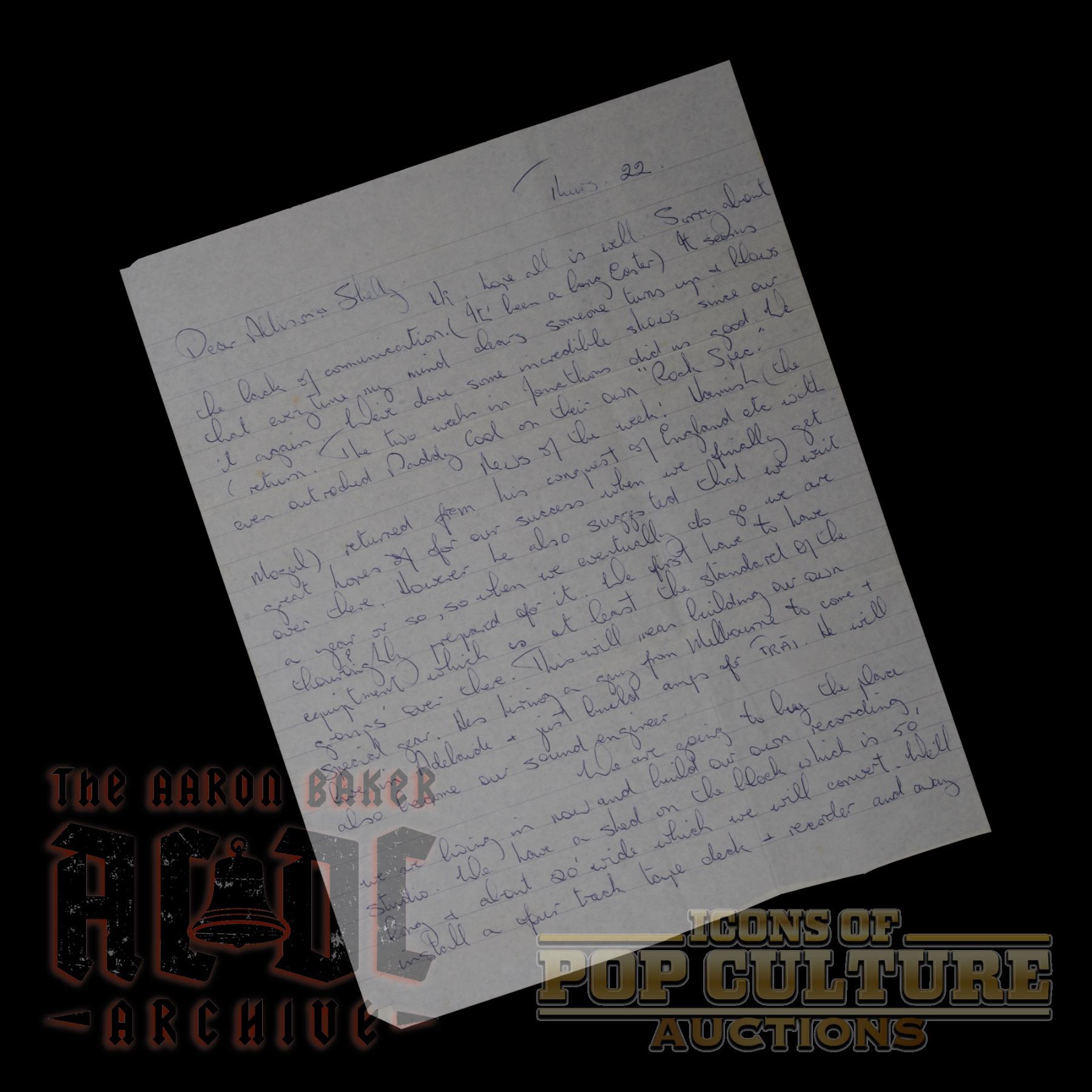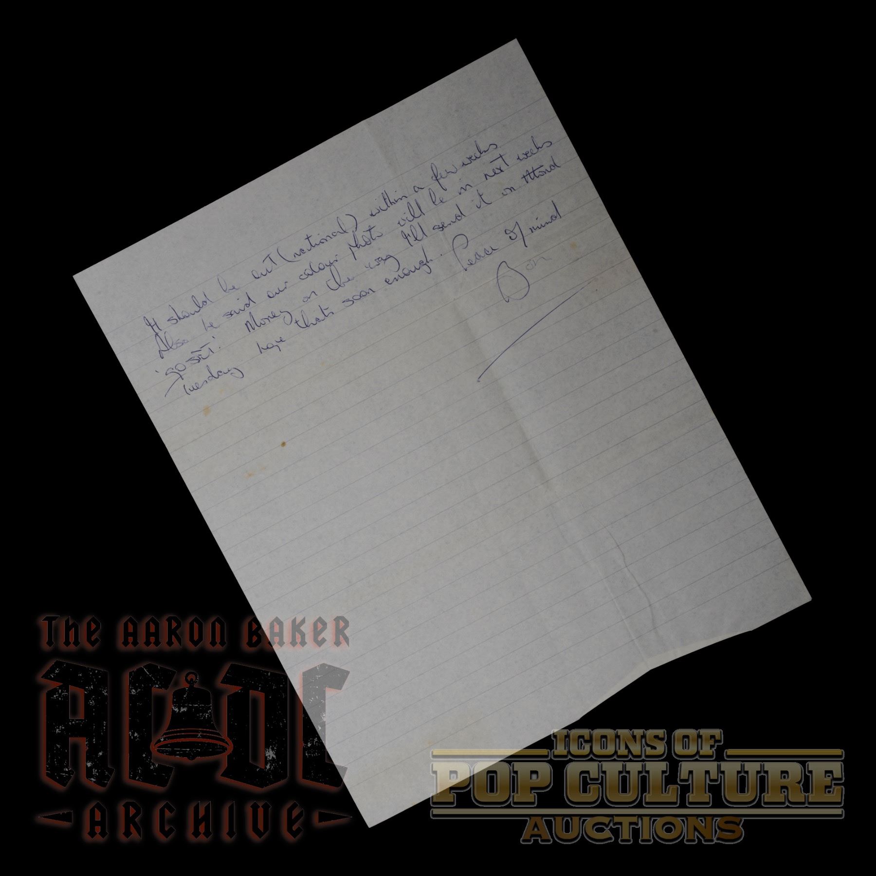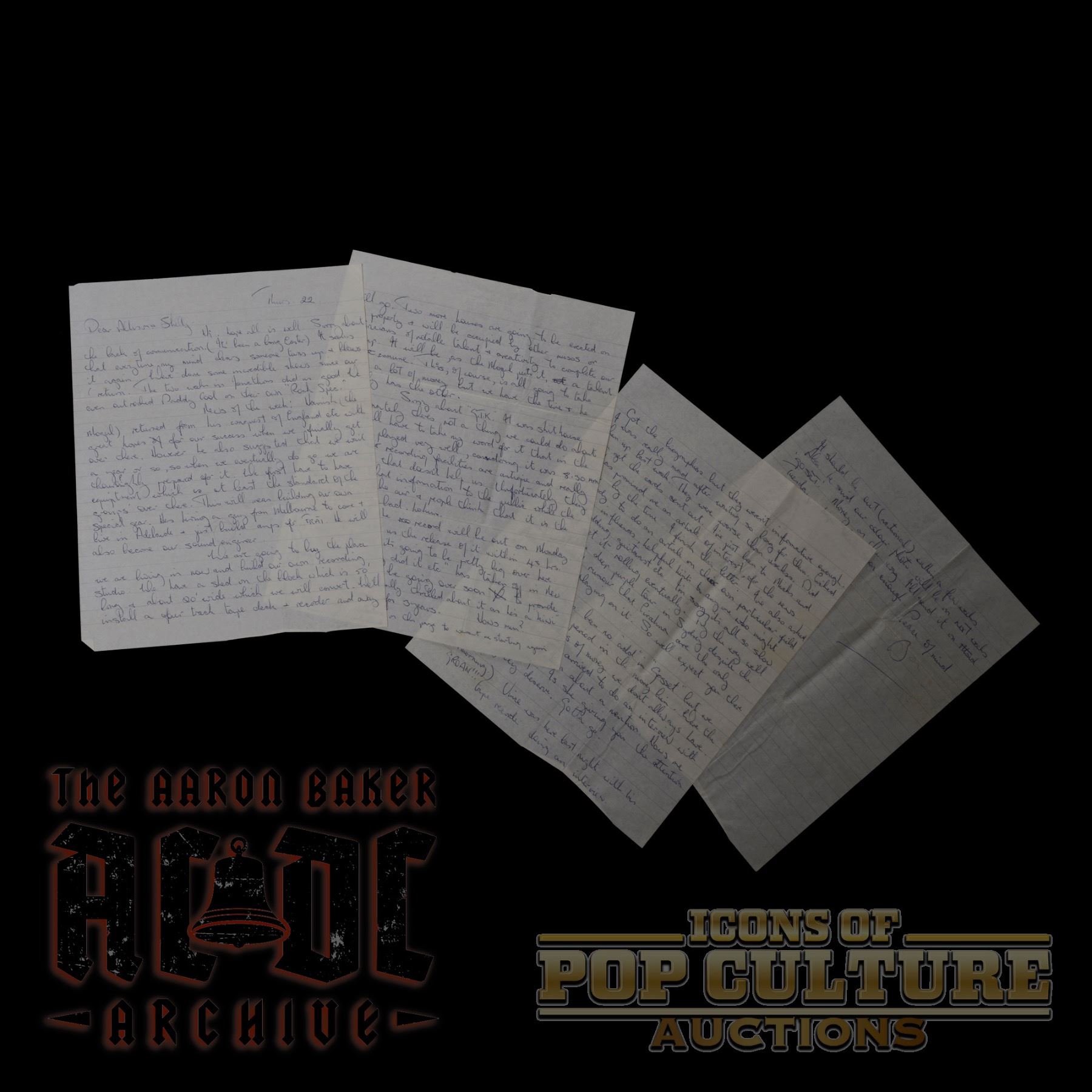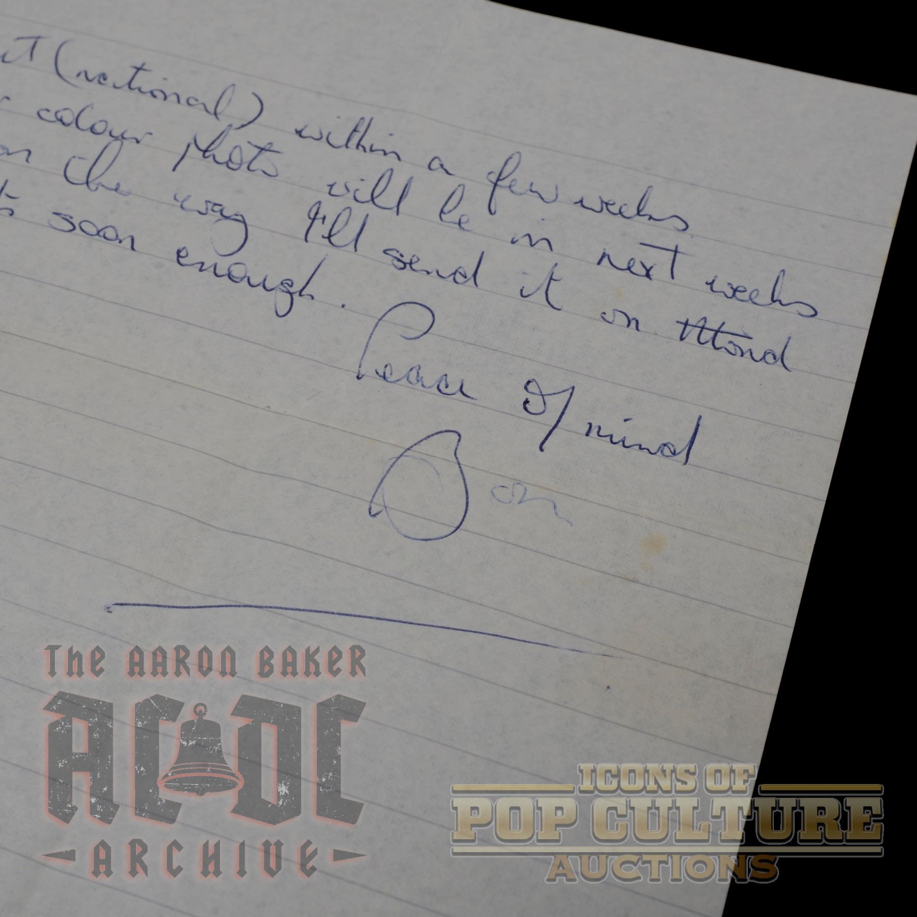 This remarkable four-page letter captures Bon Scott’s charm, ambition, and humor as he navigated the early stages of his career. A tangible and historically significant artifact, it offers a rare window into the life of one of rock’s most legendary frontmen before his rise to global fame with AC/DC.