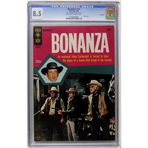 <B>Bonanza #12 File Copy (Gold Key, 1965) CGC VF+ 8.5 Off-white to white pages.</B></I> Photo cover. CGC notes, "From the Random House Archives." Overstreet 2007 VF 8.0 value = $47; VF/NM 9.0 value = $71. CGC census 9/07: 1 in 8.5, 1 higher.<BR><BR><b>Shipping:</b> Comics - Slabbed (certified) (<a target="_blank" href="http://www.heritageauctions.com/common/shipping.php">view shipping information</a>)