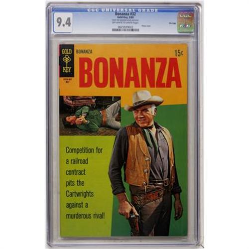 <B>Bonanza #32 File Copy (Gold Key, 1969) CGC NM 9.4 Off-white to white pages.</B></I> Photo cover. CGC notes, "From the Random House Archives." Overstreet 2007 NM- 9.2 value = $80. CGC census 9/07: 5 in 9.4, 2 higher.<BR><BR><b>Shipping:</b> Comics - Slabbed (certified) (<a target="_blank" href="http://www.heritageauctions.com/common/shipping.php">view shipping information</a>)