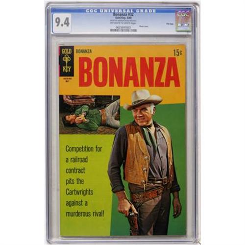 <B>Bonanza #32 File Copy (Gold Key, 1969) CGC NM 9.4 Off-white to white pages.</B></I> Photo cover. CGC notes, "From the Random House Archives." Overstreet 2007 NM- 9.2 value = $80. CGC census 10/07: 5 in 9.4, 2 higher.<BR><BR><b>Shipping:</b> Comics - Slabbed (certified) (<a target="_blank" href="http://www.heritageauctions.com/common/shipping.php">view shipping information</a>)